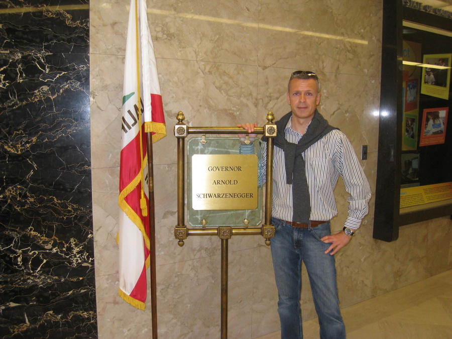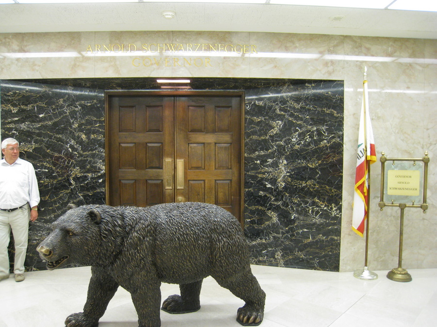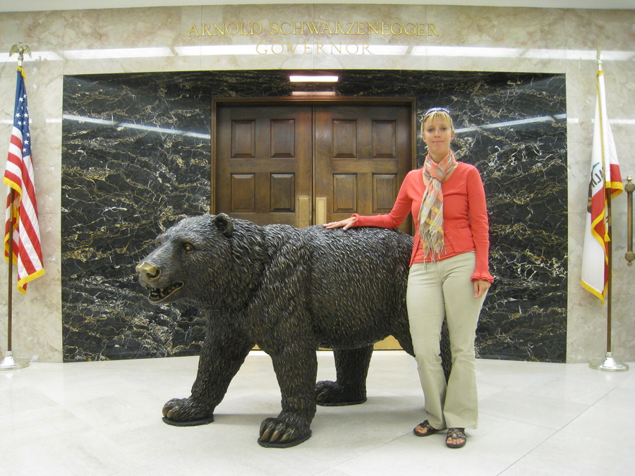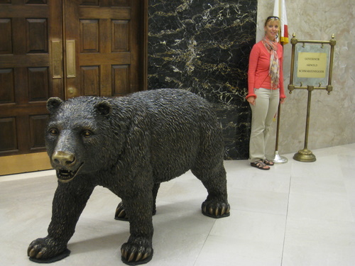 Søndag kørte vi nord på til Sacramento. Her besøgte vi State Capitol bygningen, der er meget flot. Vi var på guidet rundvisning, og fik lært lidt om styreformen i Californien, der er meget anderledes end i DK. Vi så også guvanørens Arnold Swartznegger s kontor, og den bjørn i kobber, som han selv har købt til at stå udenfor sit kontor.