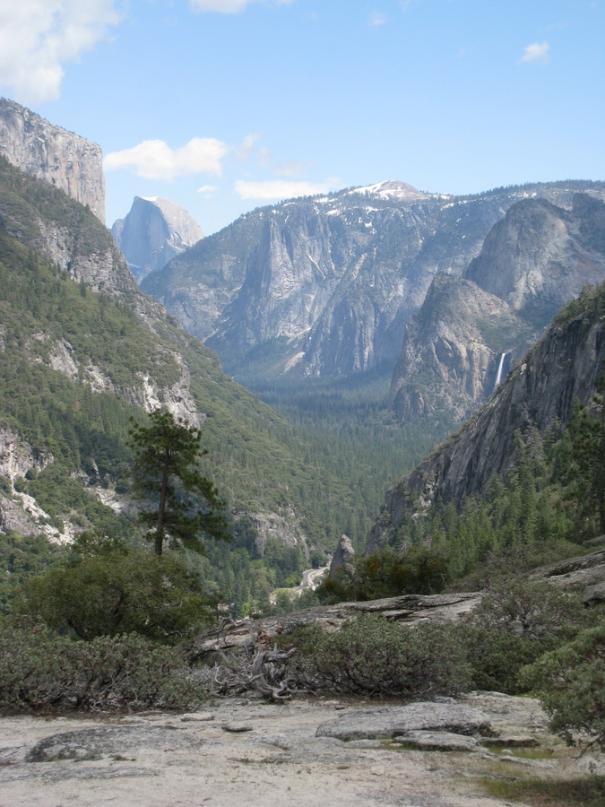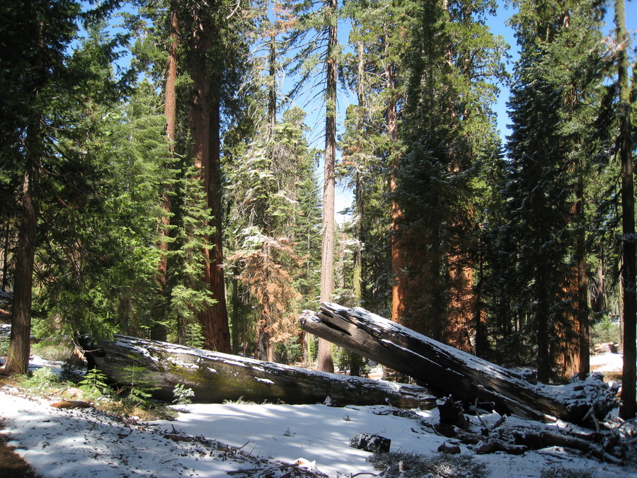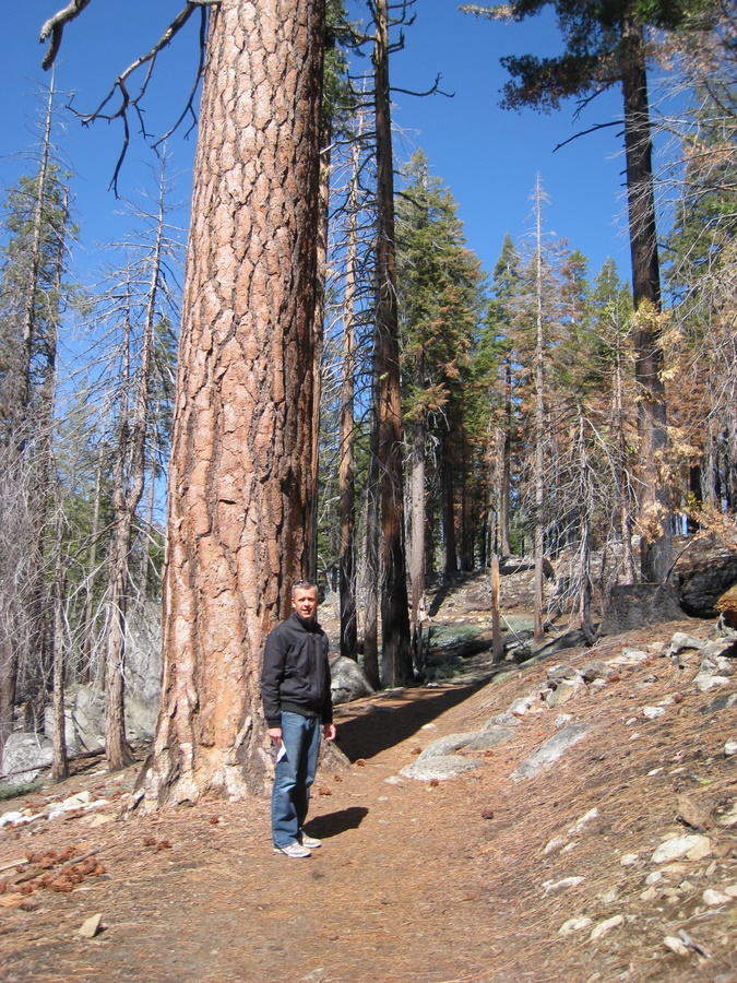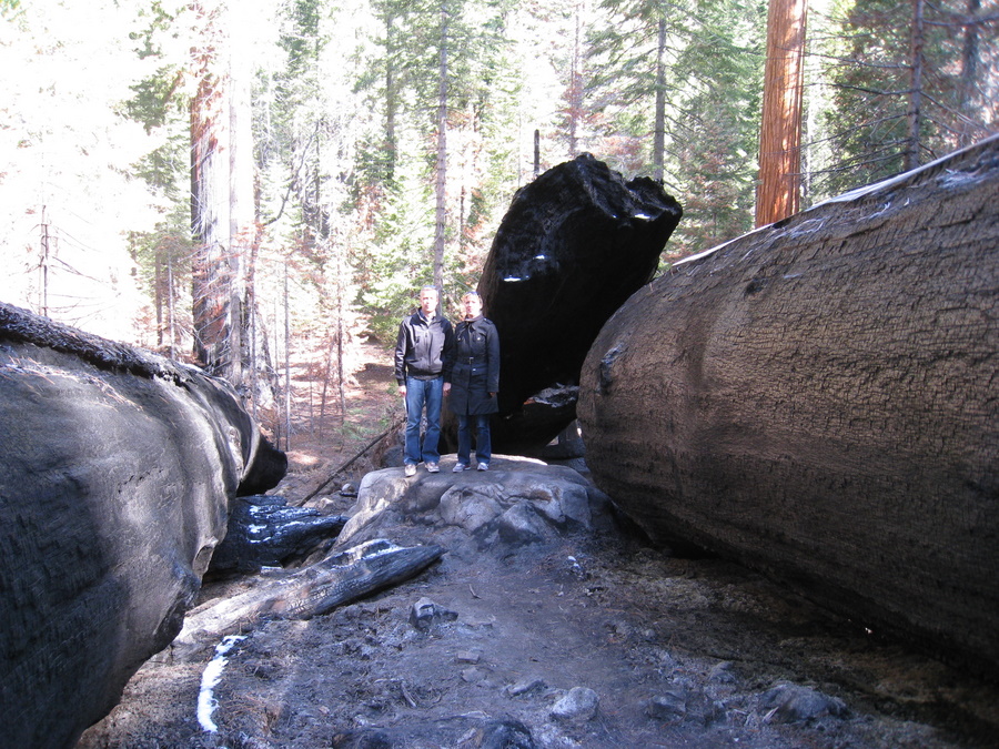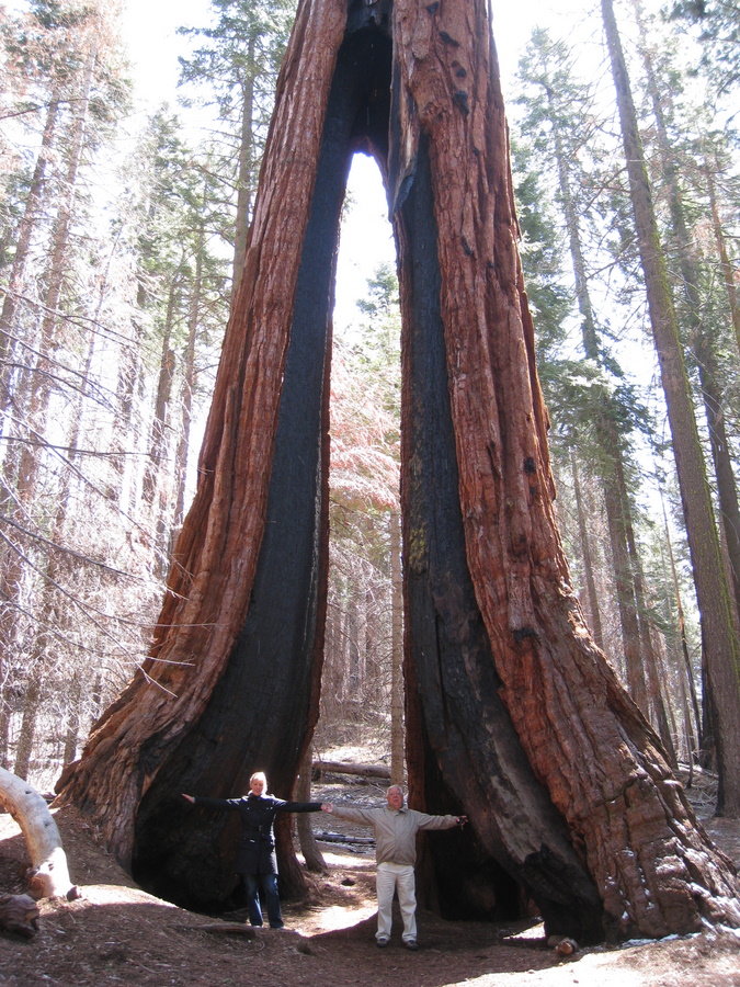 Vi startede fra den sydlige indgang med Mariposa grove - hvor vi så mange meget store sequia trær, mange af dem er mere end 3000 år gamle. Det højeste træ i Mariposa grove er omkring 88 m, hvorimod Redwood træerne bliver op til 94 m. Sequoia træerne er dog større i diameter, omkring 12 m - kun overgået af Montezuma cypresserne i Mexico der kan have en diameter op til 15 m. I total volumen er sequoia træerne den største levende organisme vi kender til.