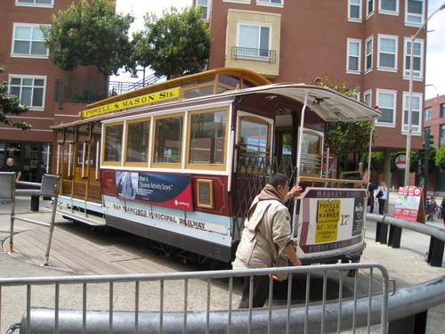 Dernæst var vi ude at køre med cablecar, vi så hvordan de vender den med håndkraft, og tog turen hele vejen til Marketstreet.