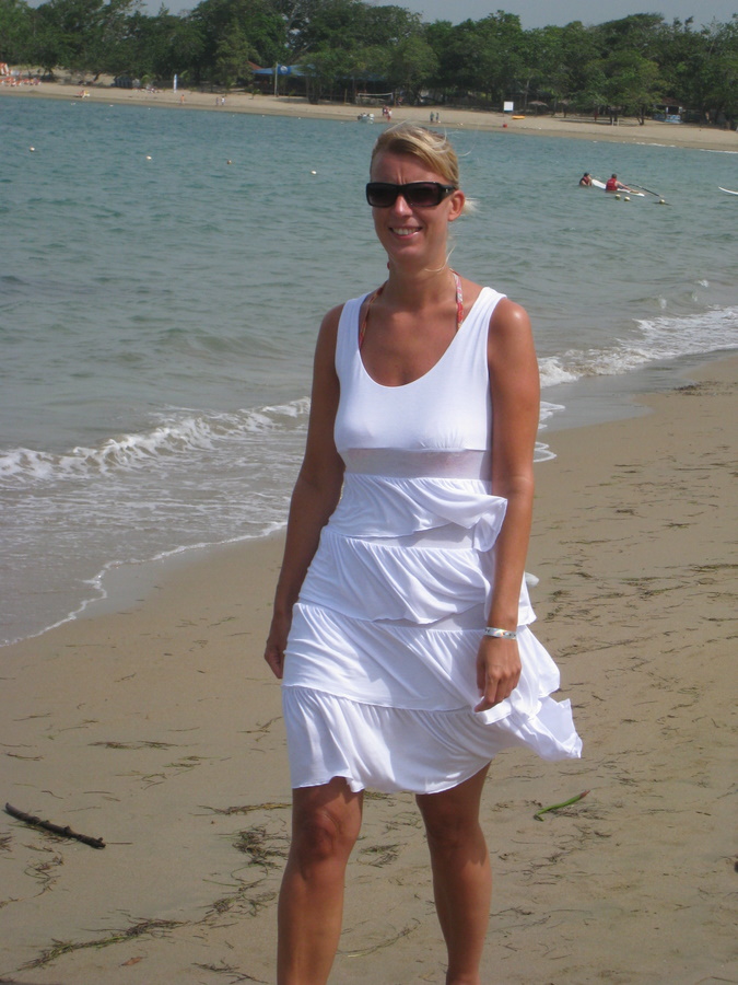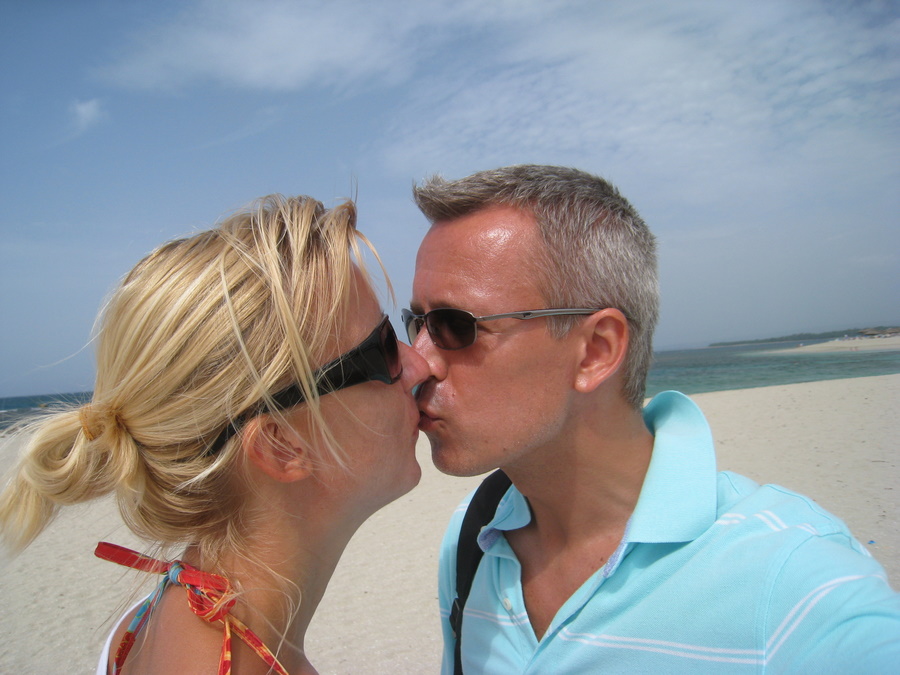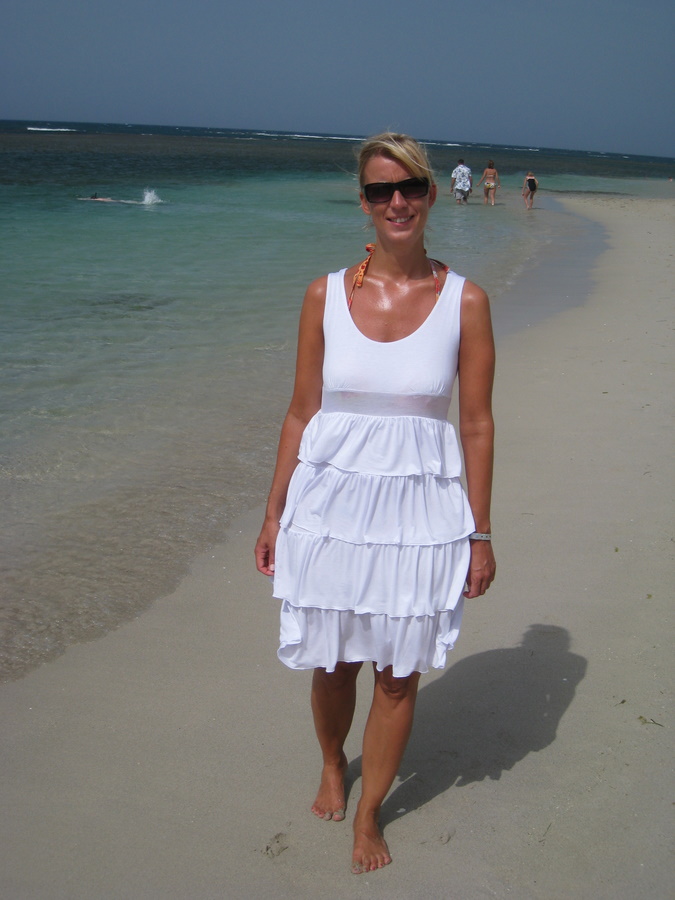 Fredag - vores sidste dag var den flotteste dag og vejret var helt klart. Vi gik en tur langs stranden ca 45 min og fandt en strand der var meget flot og havde noget helt andet hvidt sand og klart vand end der hvor vi boede. Vi måtte selvfølgelig en tur i bølgen....