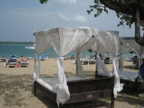 Næste dag fik vi ca 1 time på stranden, så kom regnen igen, så vi var ved at være lidt bekymret, men tirsdag viste sig at blive rigtig god. og vi fik al den sol vi kunne tåle - og regnen kom først om aftenen! Vi boede på all inclusive og det var virkelig godt. Vi havde masser af mad at vælge imellem, og ud over buffeten var der 3 restauranter. Her skulle man dog reservere og være pænt påklædt. Vi prøvede alle 3 restauranter og var meget tilfredse. Vi fik også smagt nogle forskellige drinks og cocktails, og endte med at synes bedst om de Mai Tais de lavede af den lokale rom.