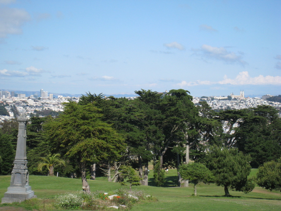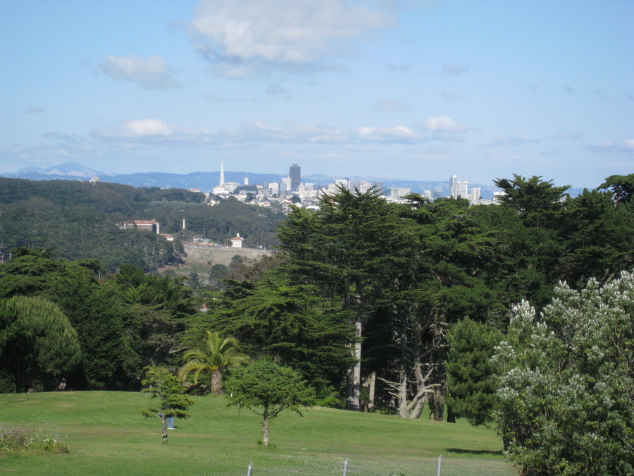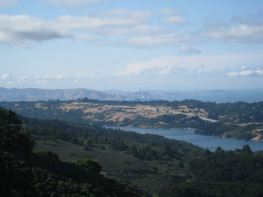 Nedenfor er udsigten fra Skyline Boulevard ud over bugten med San Franciscos skyline i det fjerne.