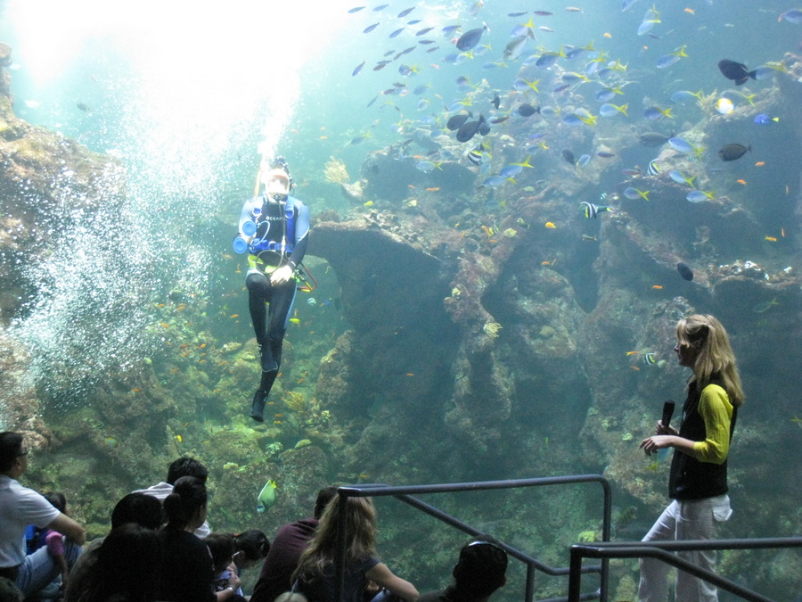 Vi vidste at specielt planetariet ville være populært, så ville komme tidligt for at være sikker på at få billetter. Det viste sig at være en god idé. Der var mange mennesker, men det var bestemt besøget værd. Vi brugte 4-5 timer der, og så den tropiske regnskov med alle de dyr der hører til, det store akvarium, planetariet, hvor vi kom på en spændende tur i ud i rummet.
