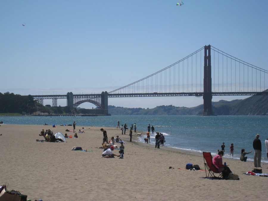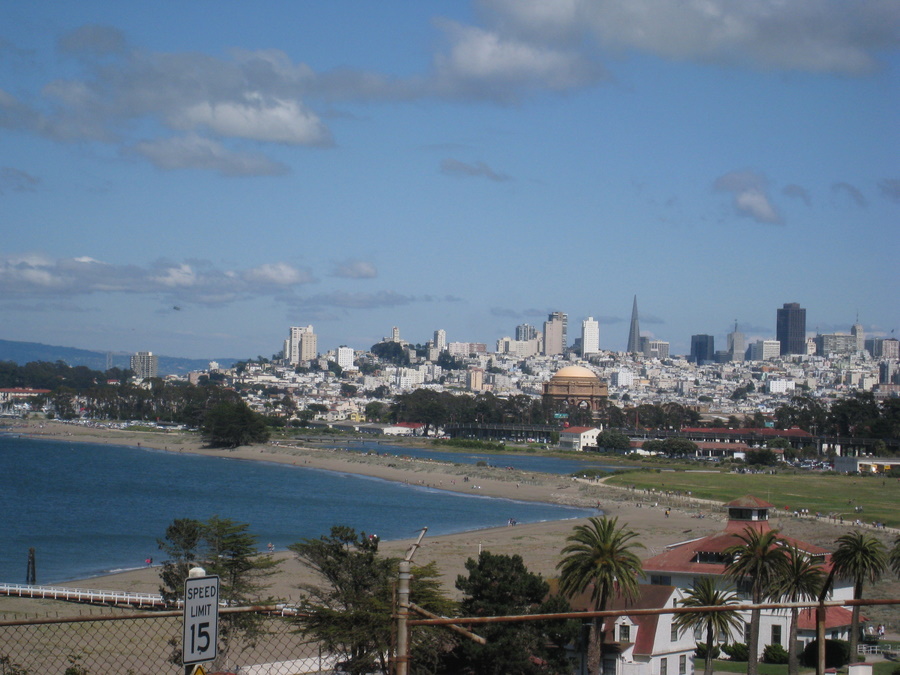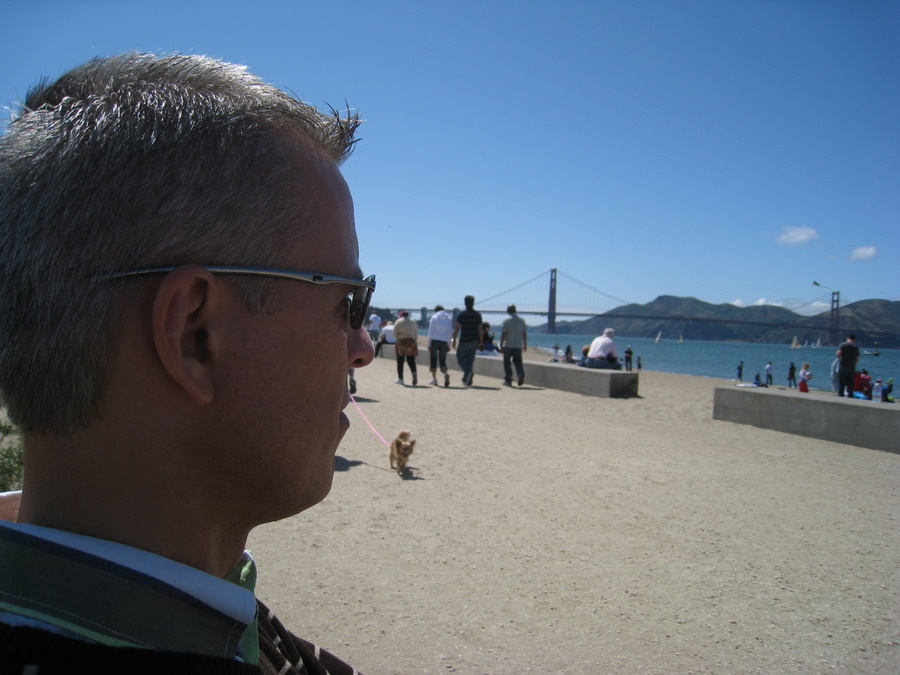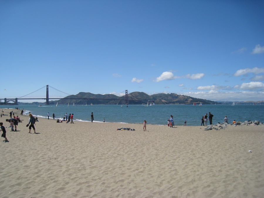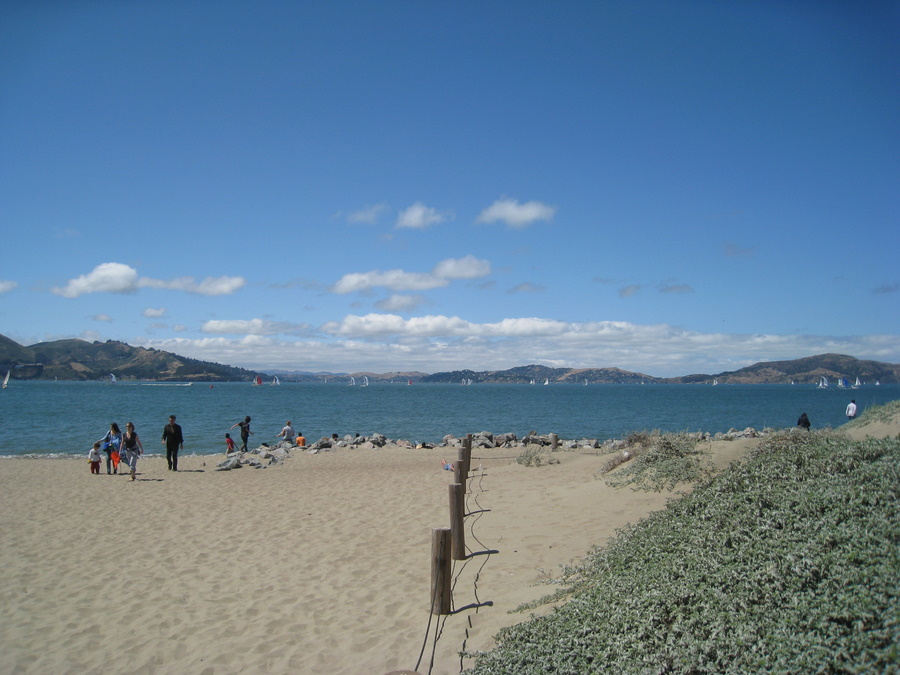 Vi gik en tur langs stranden, hvor der rigtig var liv og der var kapsejllads i gang i San Francisco Bay, og da vejret var helt perfekt, var det rigtig flot.