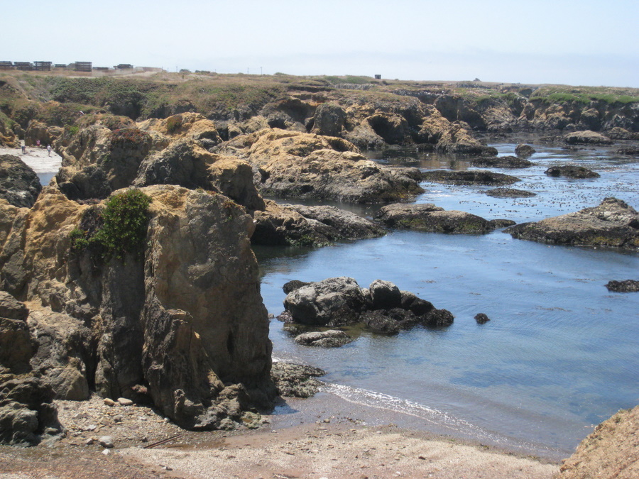 Vi gik en tur i byen og nede var stranden "Glass beach".