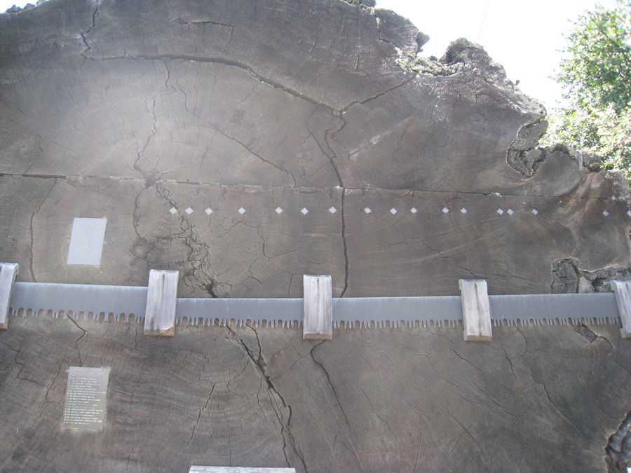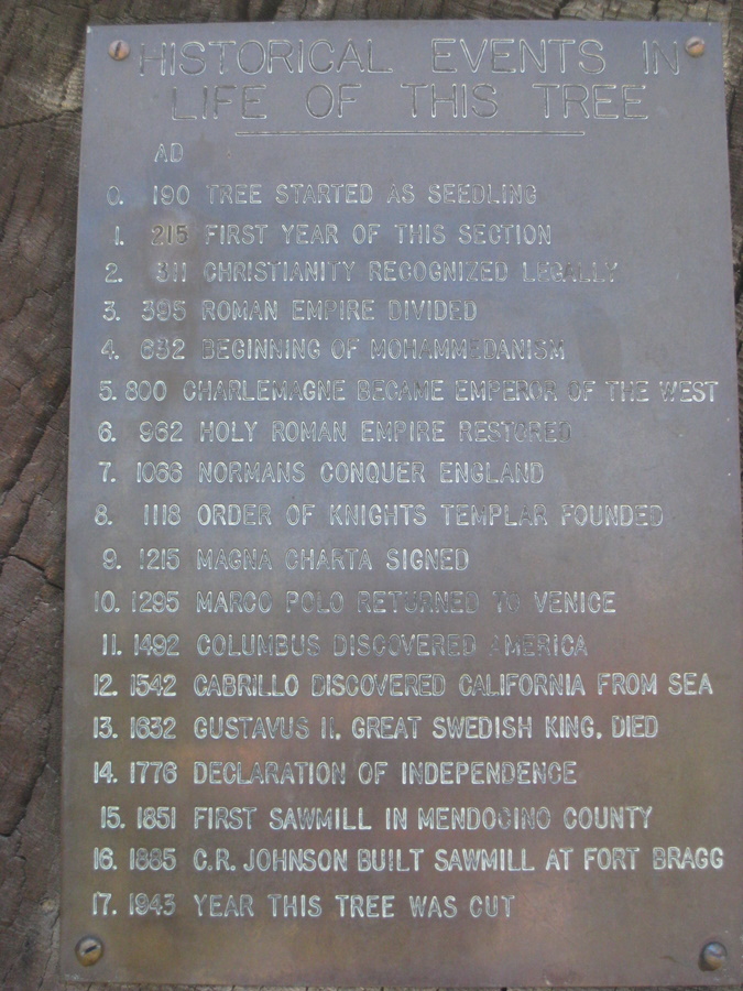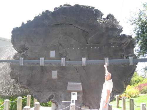 For mange år siden var Fort Bragg et udskibnings sted for Redwood træer. Billedet ovenover viser et træ som startede sit liv i år 190 - og blev fældet i 1943. Der hvor Hans peger opdagede Columbus Amerika!