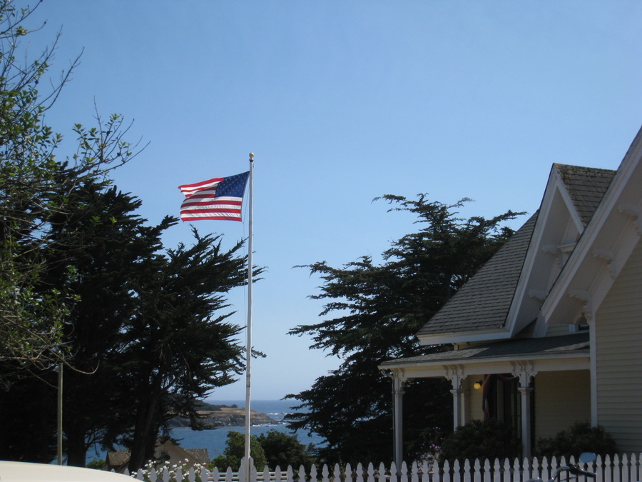 Vi brugte eftermiddagen i Mendocino, der er en hyggelig by med masser at gamle victorianske huse. Byen ligger perfekt placeret på en llille halvø ud mod Stillehavet, så der er flot udsigt over alt i byen, og der var en speciel ferie stemning her. Der var flere gallerier, garnbutik, smykkebutik og kunsthåndværk.