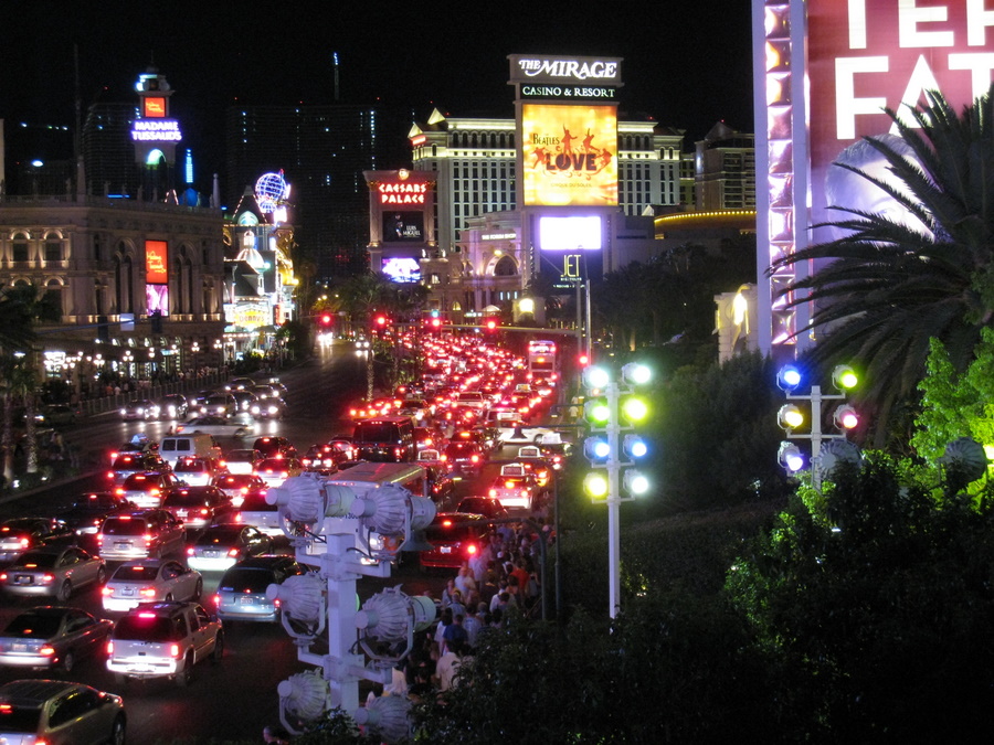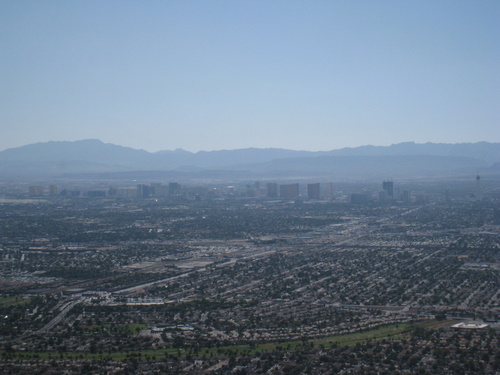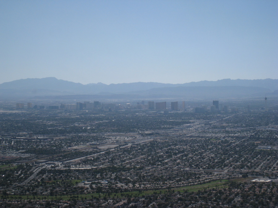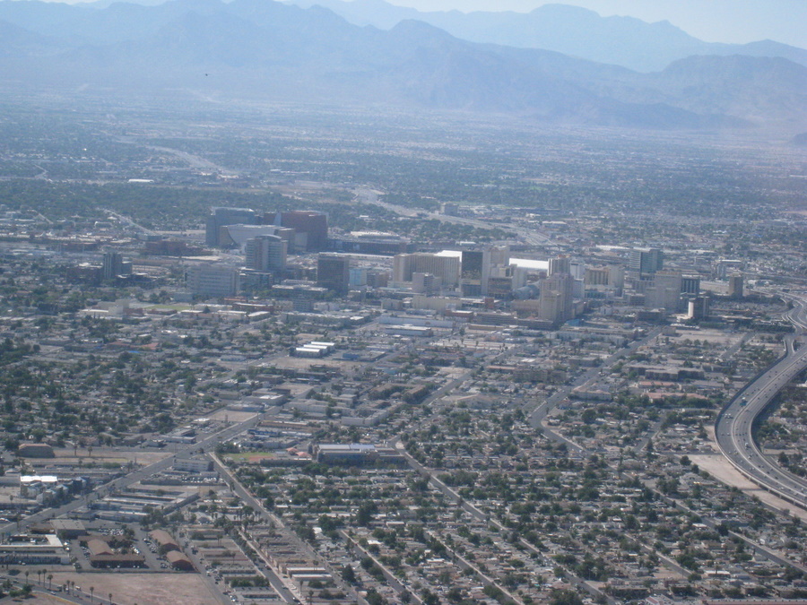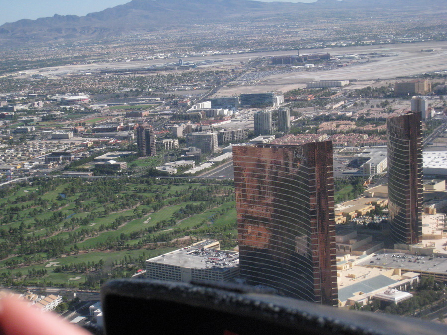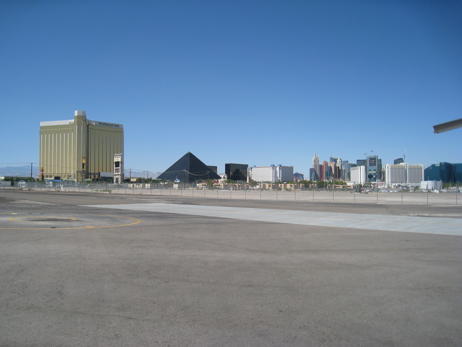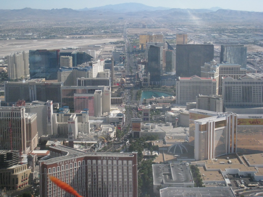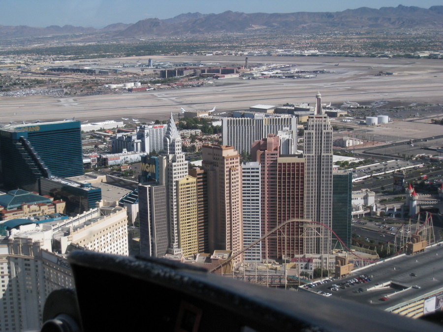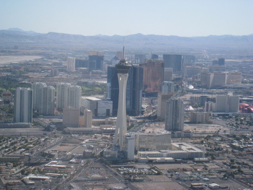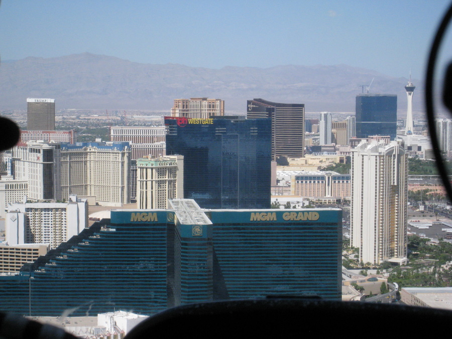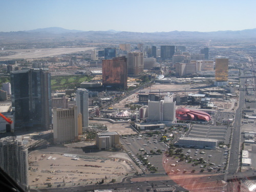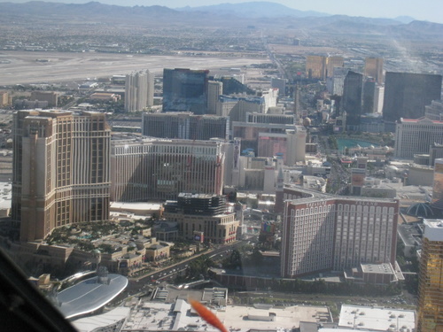 På vej hjem fløj vi over "The Strip" og havde en fin udsigt over alle hotellerne.