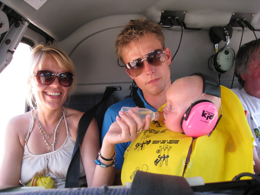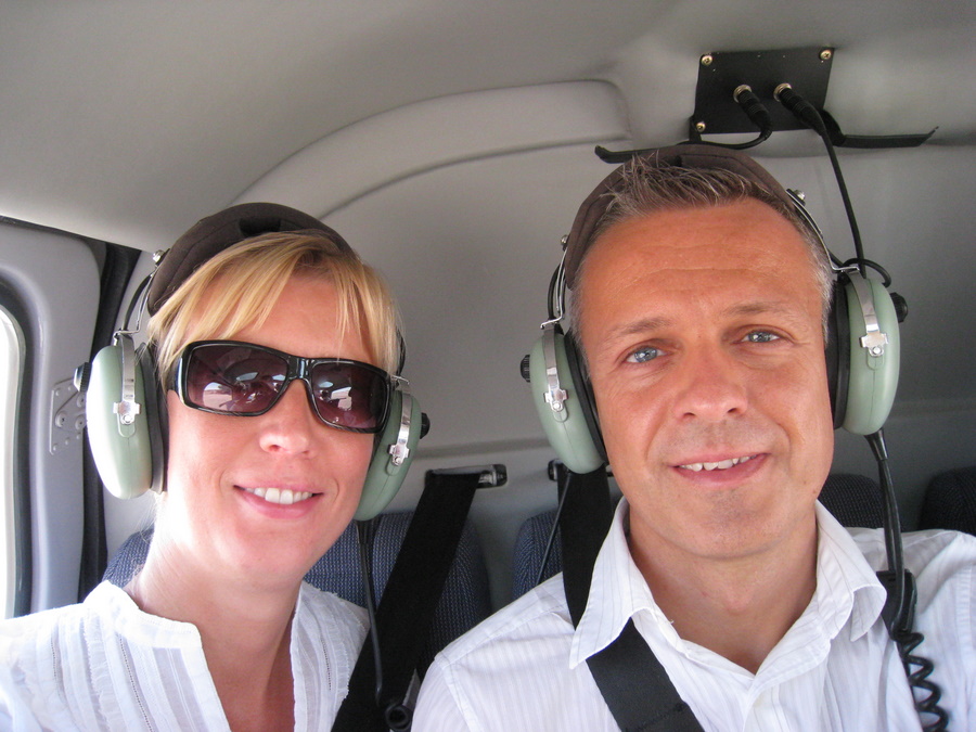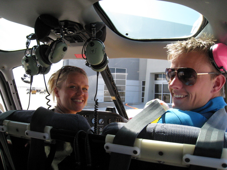 Vi blev kørt til lufthaven - og efter at vi alle var chekket ind og vejet, var vi klar til afgang. Der var plads til 6 pers i helikopteren. Vi fløj med pilot Langdon.