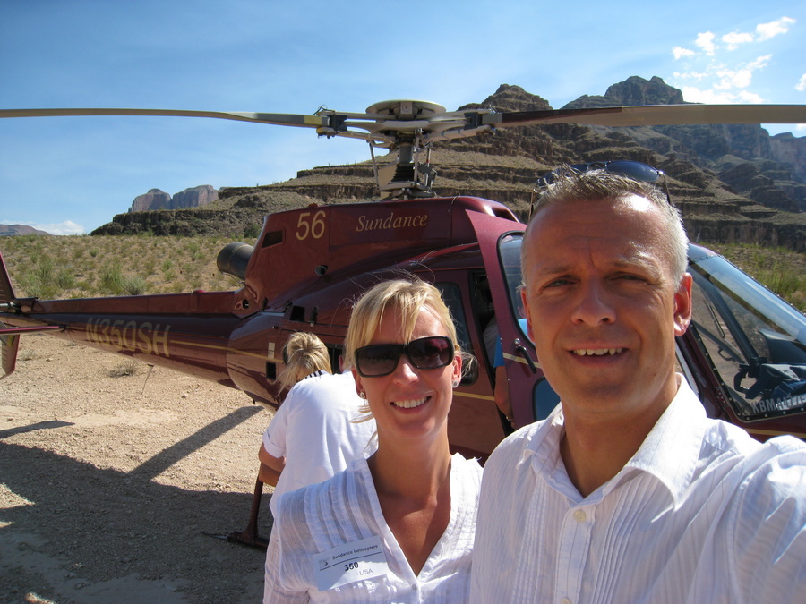 Mandag d 7 sept havde vi bestilt en tur med helikopter fra Las Vegas til Grand Canyon. Vi blev hentet på nabohotellet af en sort lang limosine - jo jo - stilen var lagt!
