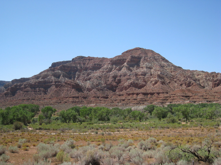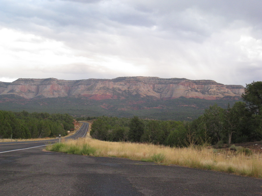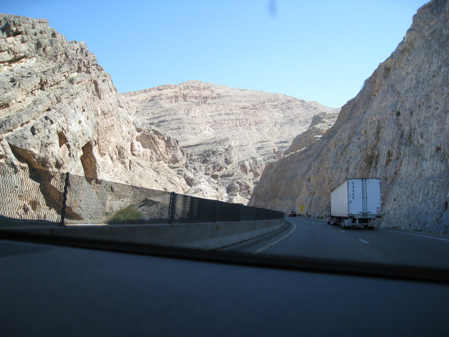 Vi kørte ud af Zion nationapark gennem østindgangen. En flot tur, hvor man kører gennem den 1,8 km lange Mt. Carmel tunnel og adskillige hårnålesving!