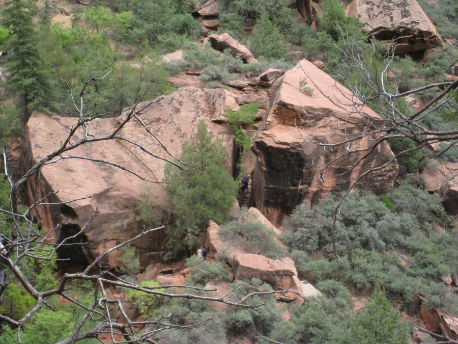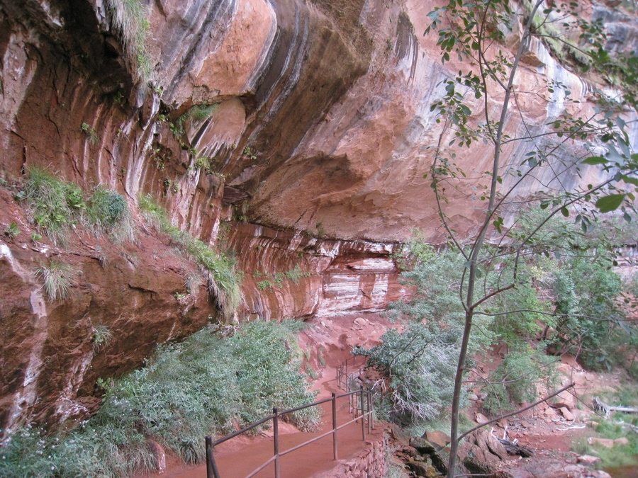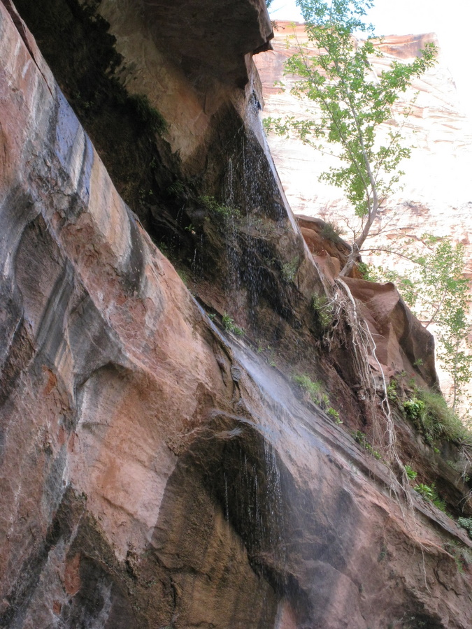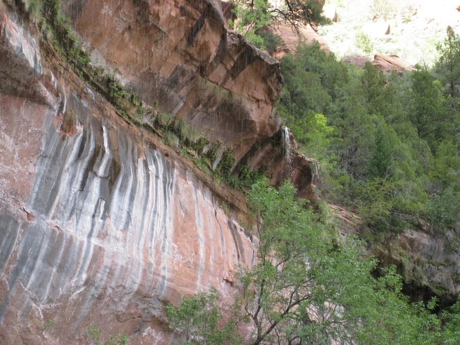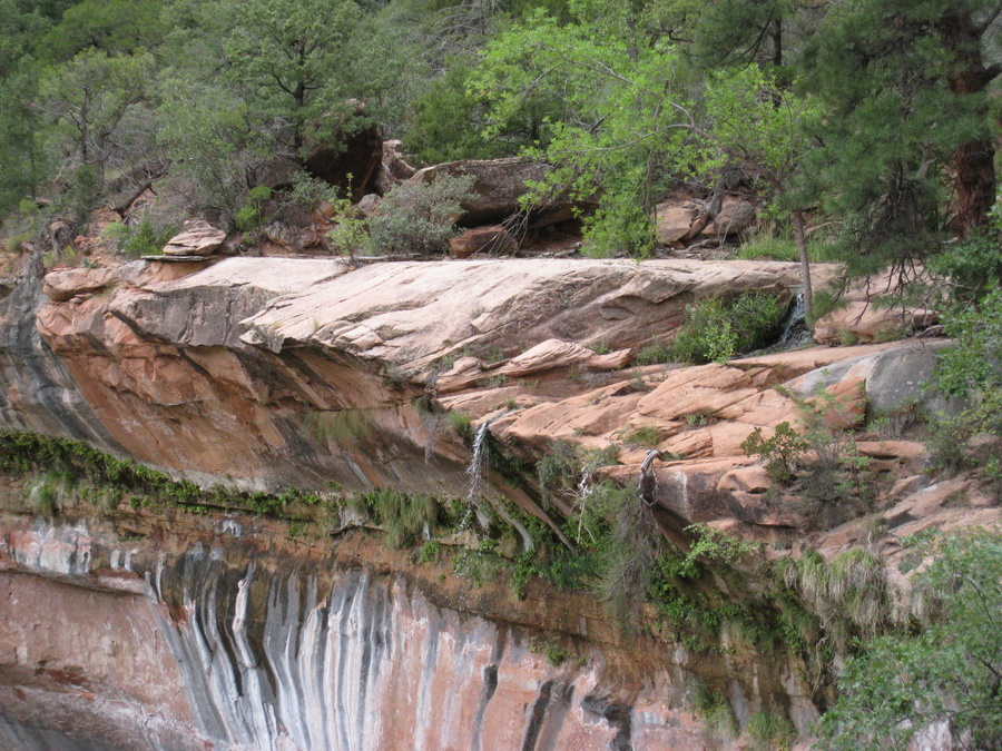 Hans under vandfaldet (Emerald Pools) - eller det der var tilbage her om sommeren. Man kan kun lige ane vandet på billedet