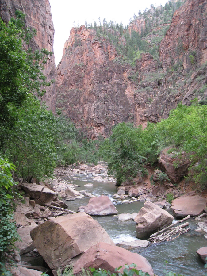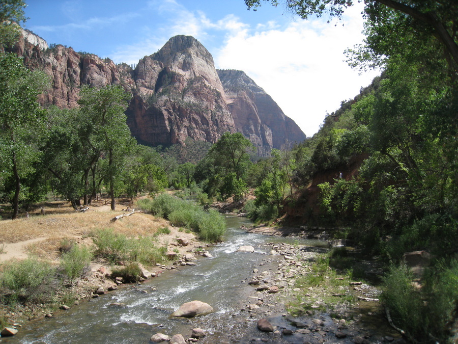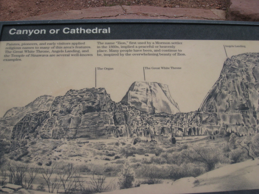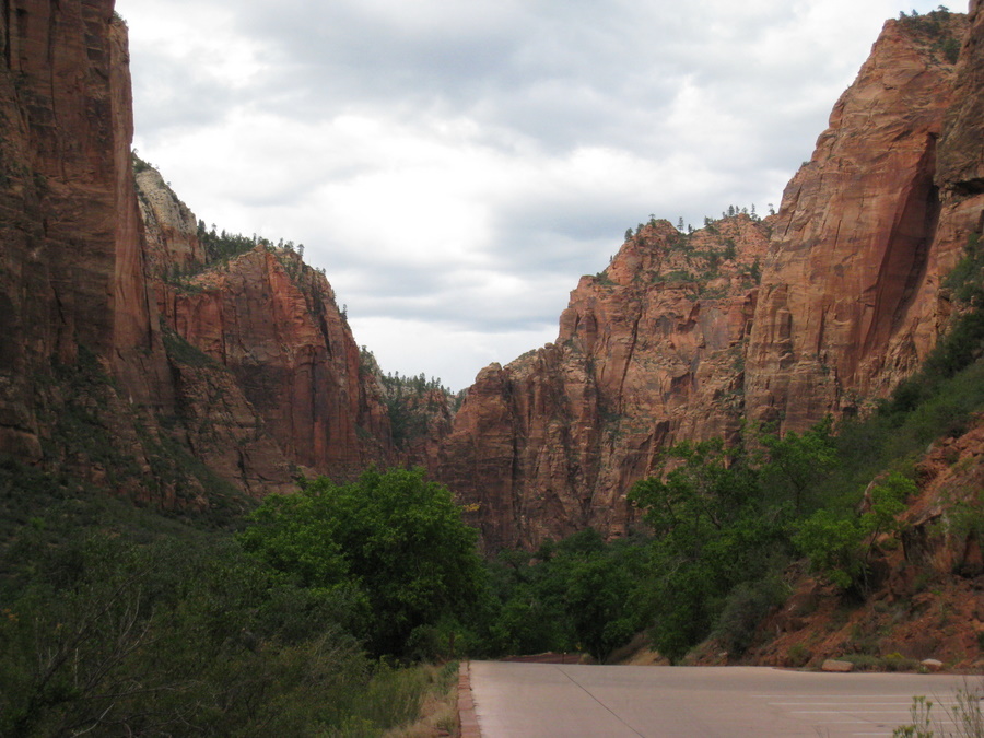 Zion Canyon er en 11 km lang blind vej langs floden North Fork Virgin, der fører ind i nationalparkens frodige hjerte. Da mormoner og metodister først opdagede stedet, fandt de det så guddommeligt smukt, at de forsynede bjergene i Zion (der betyder Himlen for mormoner) med en lang række religiøse navne: Angels Landing, Cathedral Mountain, Isaac, Jacob osv.