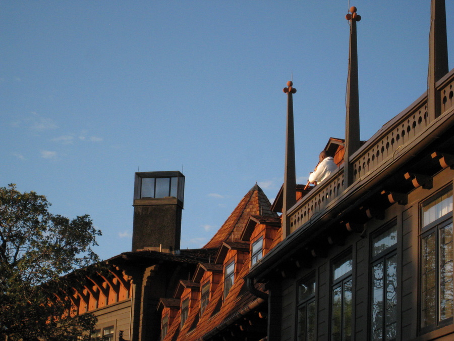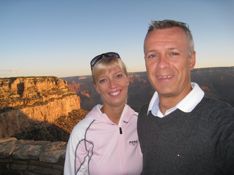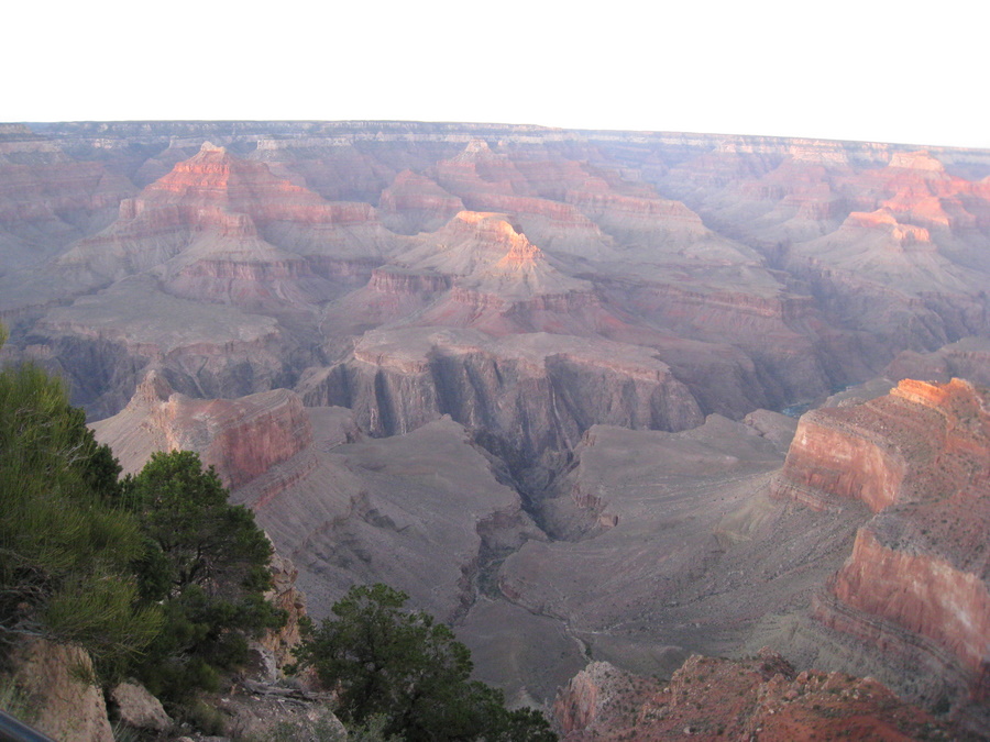 Næste morgen stod vi op kl 5 for at se solopgang. Desværre kom bussen ikke på det tidspunkt den skulle, og vi gik tilbage til hotellet, og måtte nøjes med solopgangen fra kanten her - men det var nu heller ikke så dårligt! Mens solen stod op gik der en indianer rundt på El Tovar hotellet og spillede orginal indiansk fløjte.