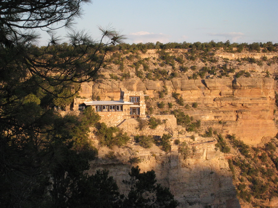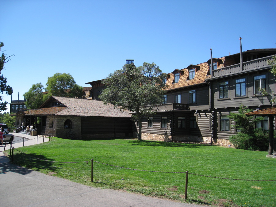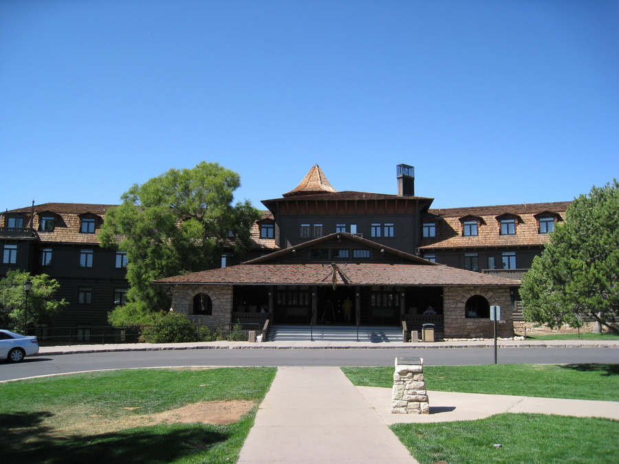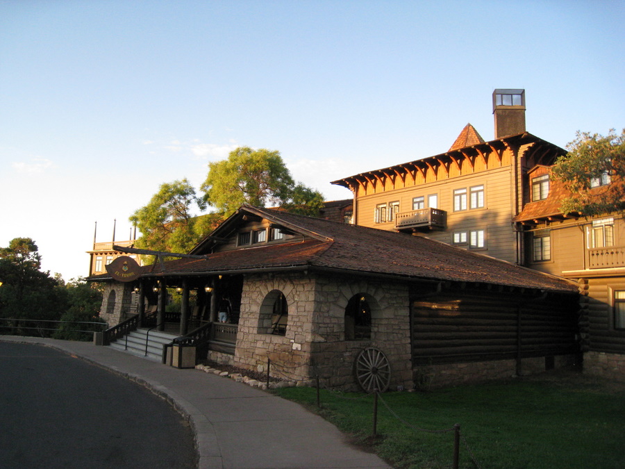 Arkitektonisk er det beskrevet som kronjuvelen i Grand Canyon. Bygget i 1904 - og allerede dengang var det et luksus hotel på stedet. Det ligger helt ud til kanten af Grand Canyon, og fra restauranten og flere af værelserne er der udsigt ud over canyonen. Vi kunne dog ikke få et værelse med udsigt, men det gjorde ikke så meget eftersom vi først var på værelset efter solnedgang og oppe inden solopgang. Vi fik reserveret en plads i restautanten til efter solnedgang.