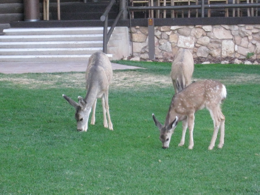 Der lå flere hjorte i græsset udenfor hotellet tidlig om morgenen, og vi så bl.a. også geder, egern og fik også set det berømte store fugl Den Californiske Condor, som kan have et vingefang på op til 3 m! Der er nu over 60 Condorer i Arizona og tallet er stigene fordi de opdrættes i fangeskab og slippes fri.