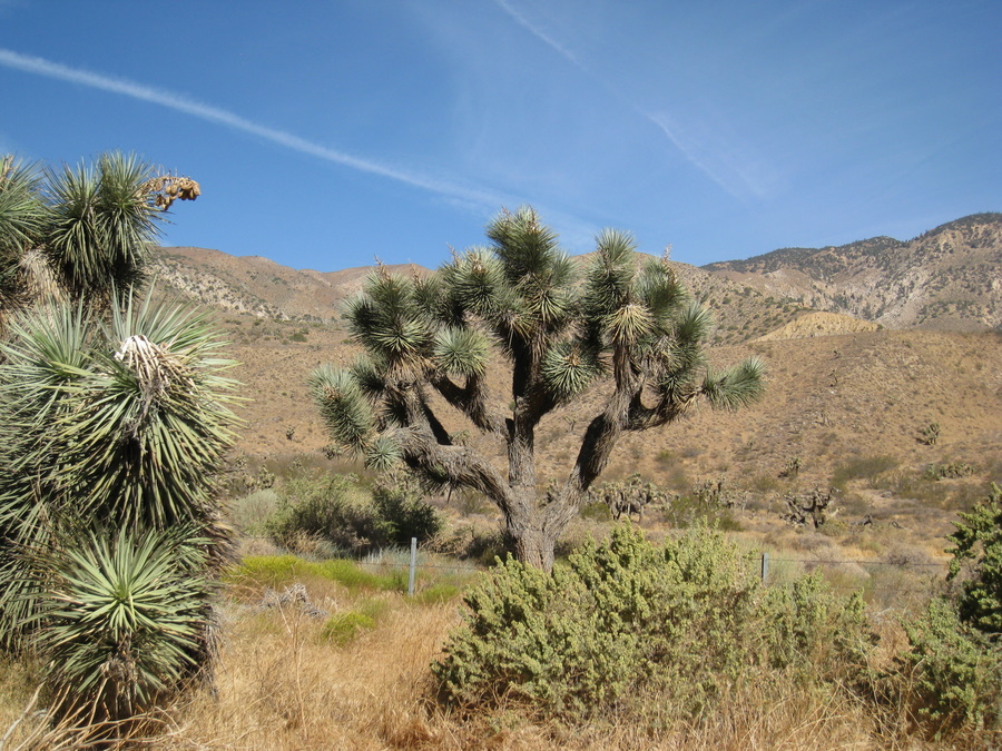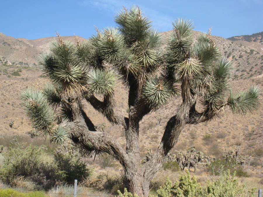 Vi kom flere gange forbi det specielle ørkentræ Joshua-tree med de meget specielle arme. Det kan blive op til 15 m - men så store så vi dem dog ikke.