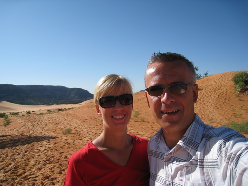 D. 11 sept kørte vi mod Grand Canyon Syd indgangen (South Rim). På vej hjem fra Bryce Canyon National Park kom vi forbi Coral Pink Sand Dunes State Park, som vi lige ville se inden vi kørte sydpå mod Grand Canyon.
