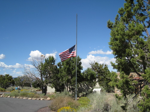 Vi kørte mod Tusayan, der ligger lige ved udgangen af sydporten. Her havde vi bestemt os for at se den fantastiske film om Grand Canyon lavet af National Geographic, der vises i Grand Canyon IMAX Theater, på et 21 m højt lærred. Filmen var en eventyrlig historisk rejse gennem Grand Canyon fra oldtidens indianere over pionerernes halsbrækkende ekspeditioner på Coloradofloden og til vores dages moderne gummiflåde turisme. Den var fantstisk godt filmet - og vi var glade for at vi fik det med.