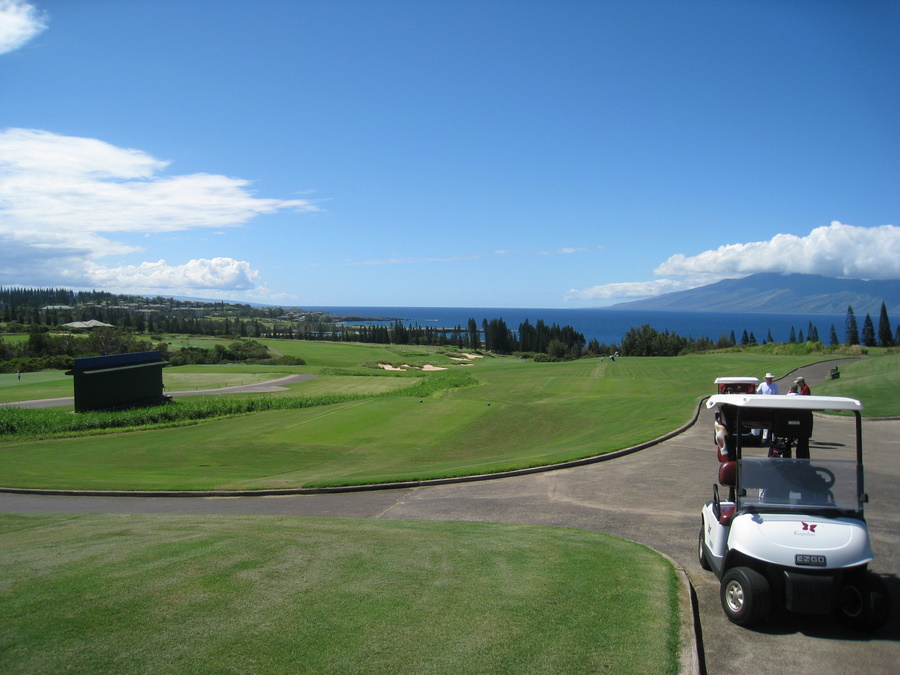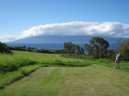 Onsdag var Hans ude at spille golf på Kapalua Plantation Golf Course, der ligger rigtig flot. Fra de fleste af hullerne er der en fabelagtig udsigt ud over vandet mod øerne Moloka’i og Lanai.