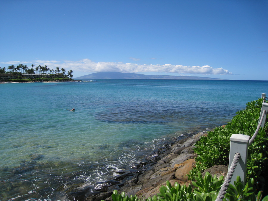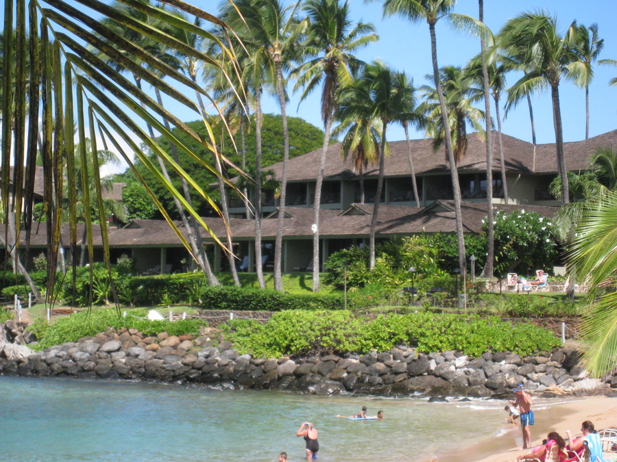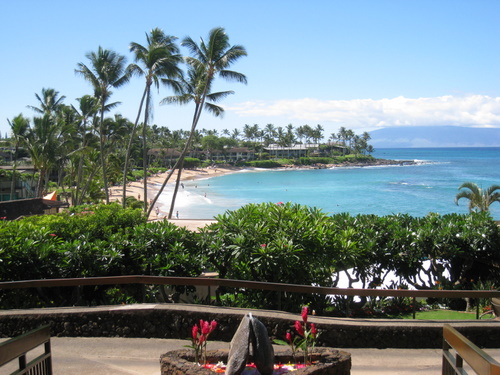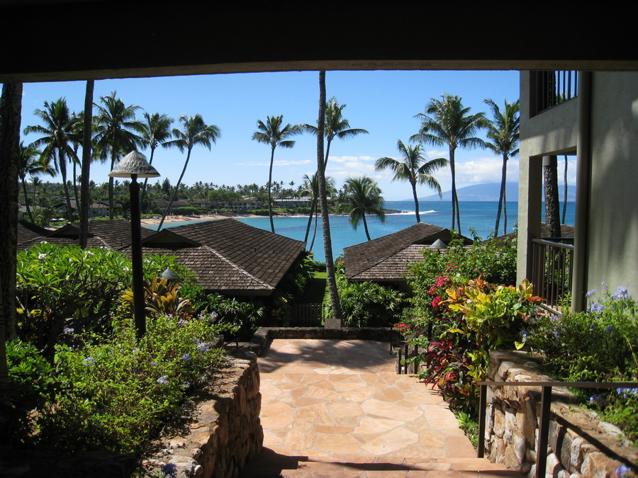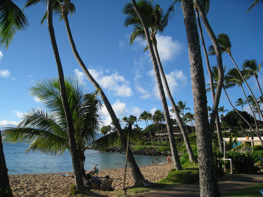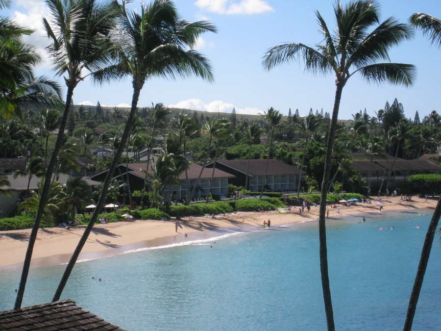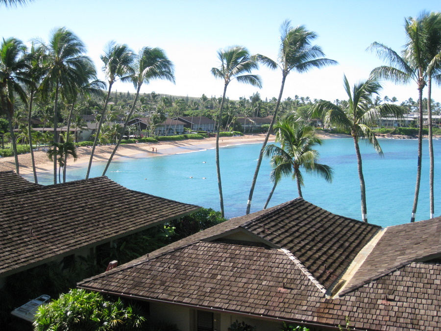 Det gik fint, kun lidt problematisk med de små parkeringspladser, der er på Hawaii. Vi skulle bo 4 nætter på Napili Beach, der ligger ca 45 min fra lufthavnen. Her fik vi et lækkert værelse med køkken. Så det var super nemt selv at lave morgenmad. Vi boede med den mest fantastiske udsigt ud over bugten med en lille strand – som kan ses på billederne.