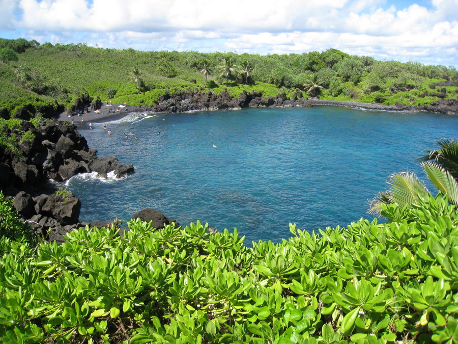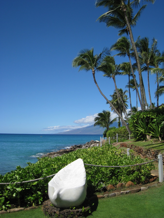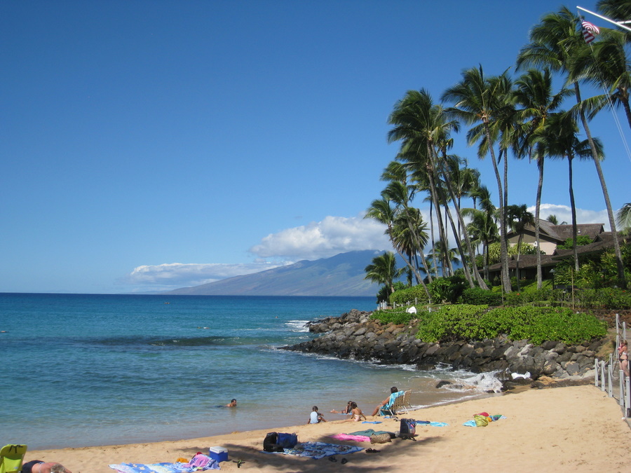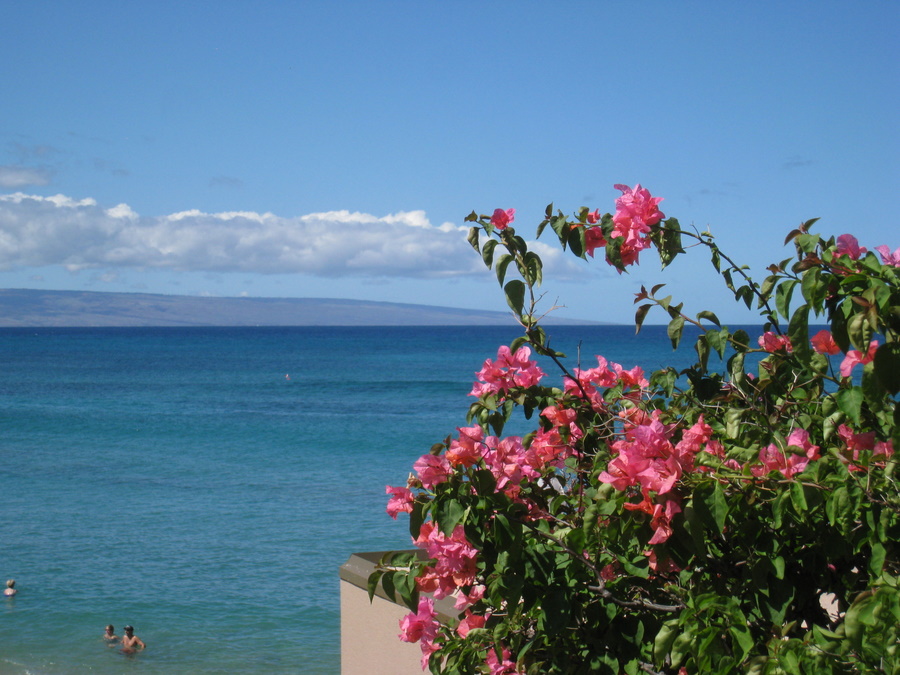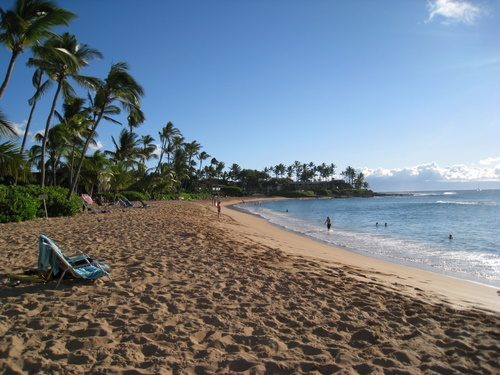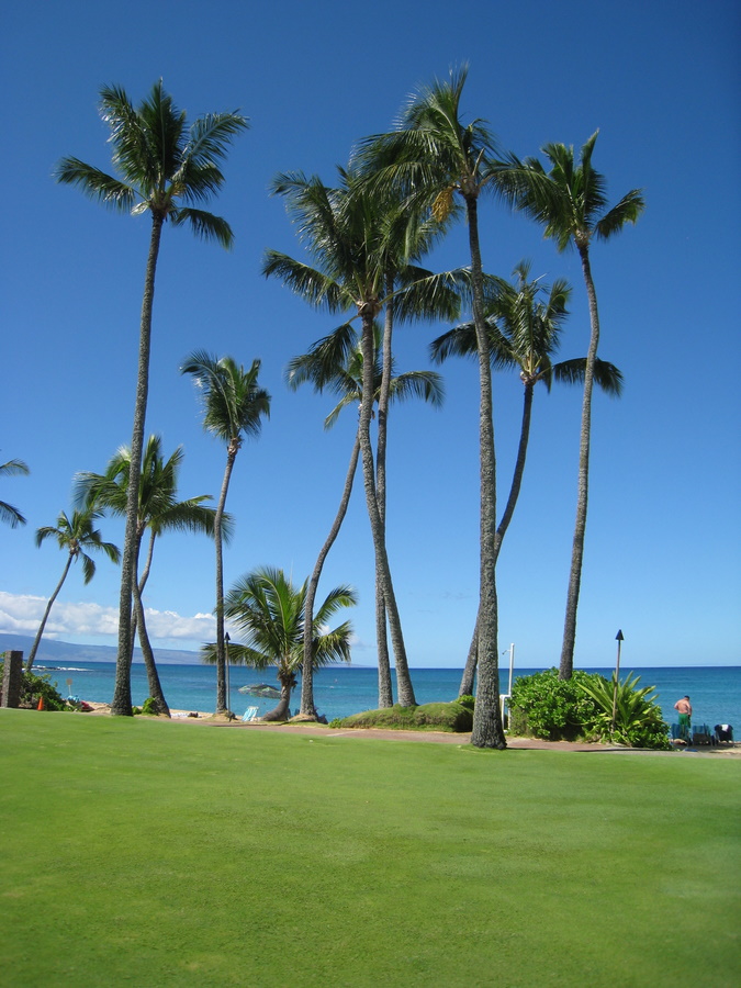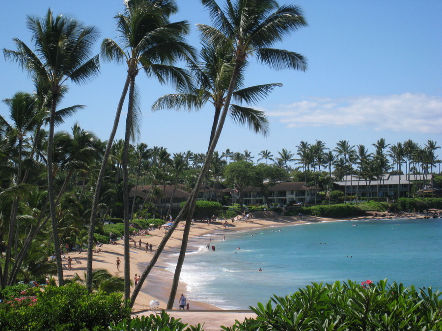 Det gik fint, kun lidt problematisk med de små parkeringspladser, der er på Hawaii. Vi skulle bo 4 nætter på Napili Beach, der ligger ca 45 min fra lufthavnen. Her fik vi et lækkert værelse med køkken. Så det var super nemt selv at lave morgenmad. Vi boede med den mest fantastiske udsigt ud over bugten med en lille strand – som kan ses på billederne.