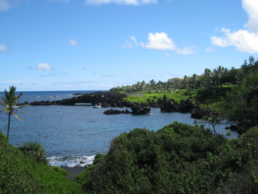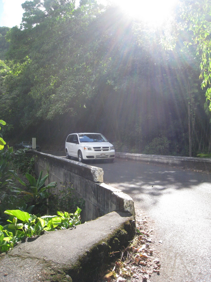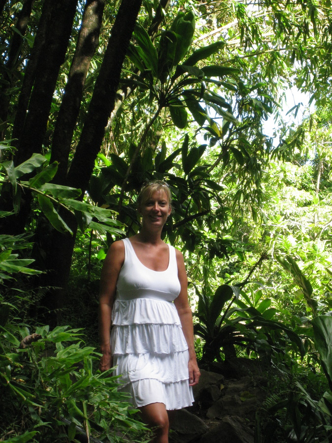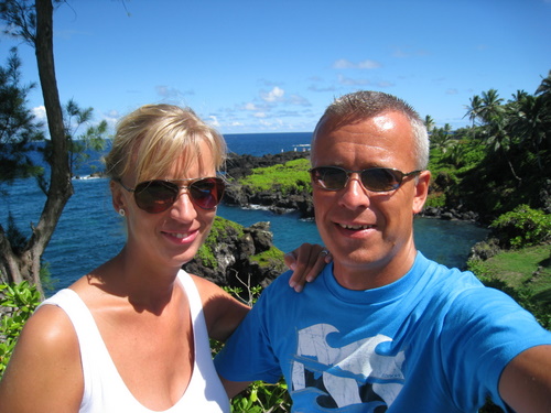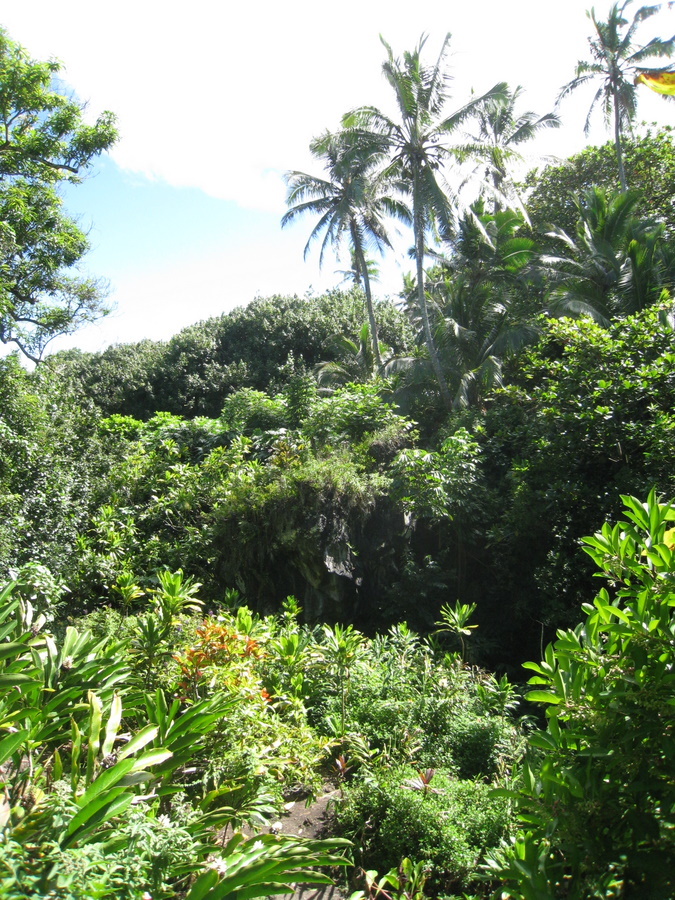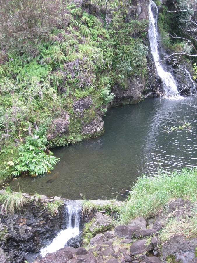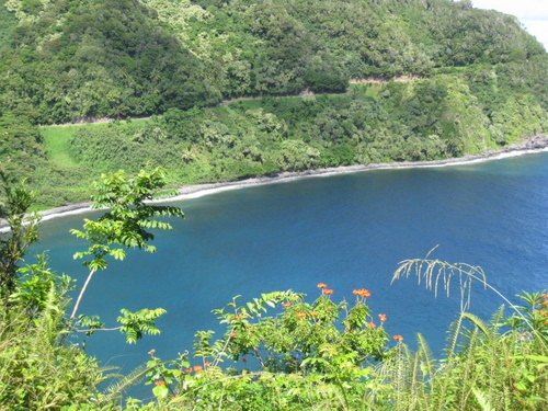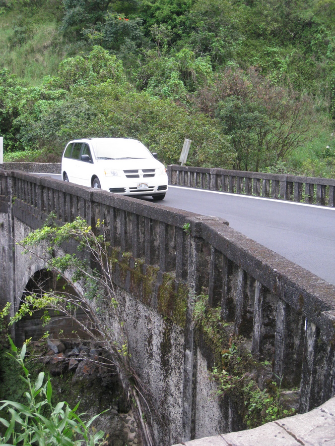 Fredag morgen chekkede vi ud fra vores skønne hotel og kørte sydpå. Vi havde besluttet os at køre til Hana. Det er ikke selve Hana by der er attraktionen, men vejen der til. Det er meget små og meget snoede veje over utallige små broer. Turen er på ca 110 km, så det tager det meste af dagen. ”Road to Hana” er et meget populært turistmål, og vi havde et kort og en CD i bilen, der fortalte om hvad vi så, og om hvornår vi skulle gøre stop. Det var rigtig fint med en ”guide”. Vi er der langs en af de mest regnfulde kyststrækninger i verden, så der var rigtig meget flot natur. Dog var der på denne årstid ikke så meget vand i vandfaldene.