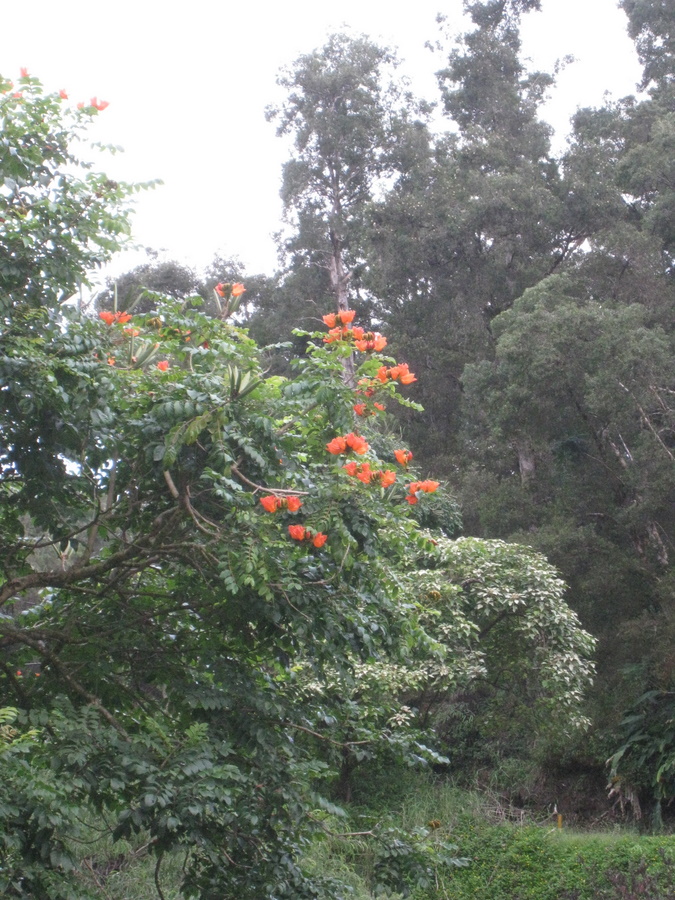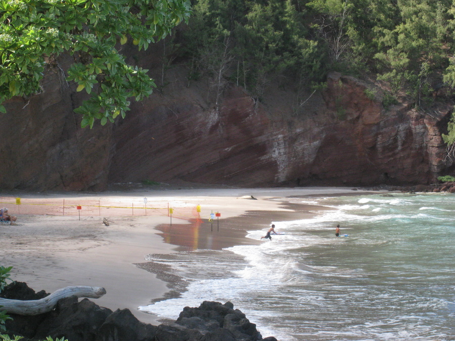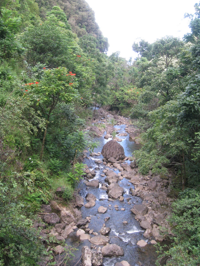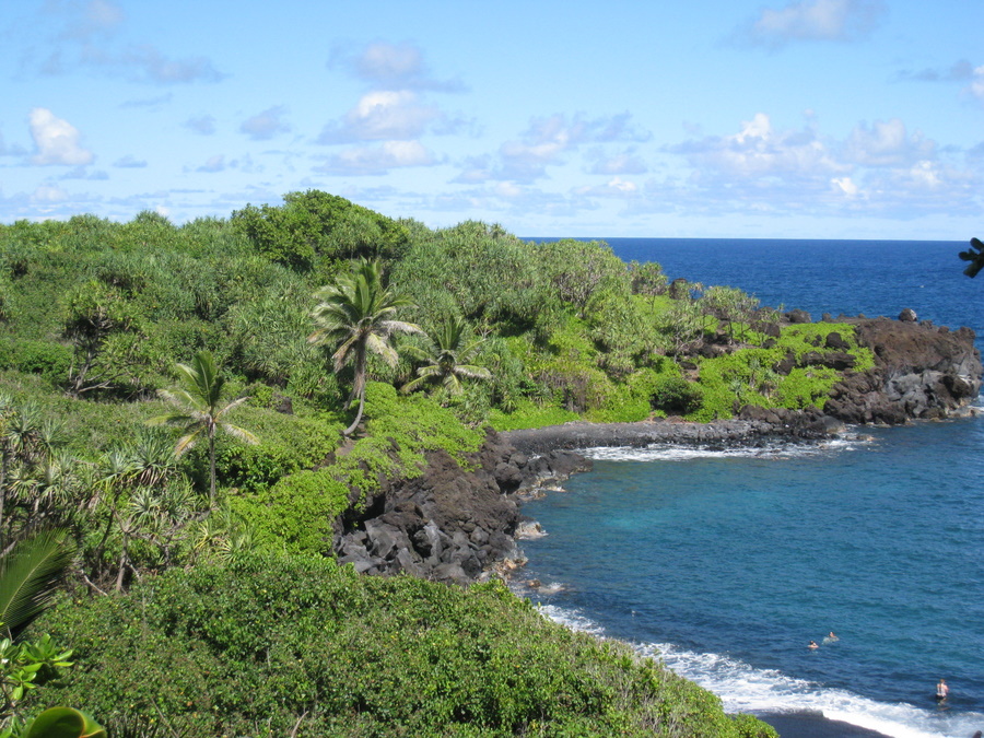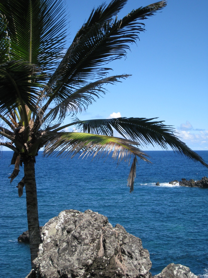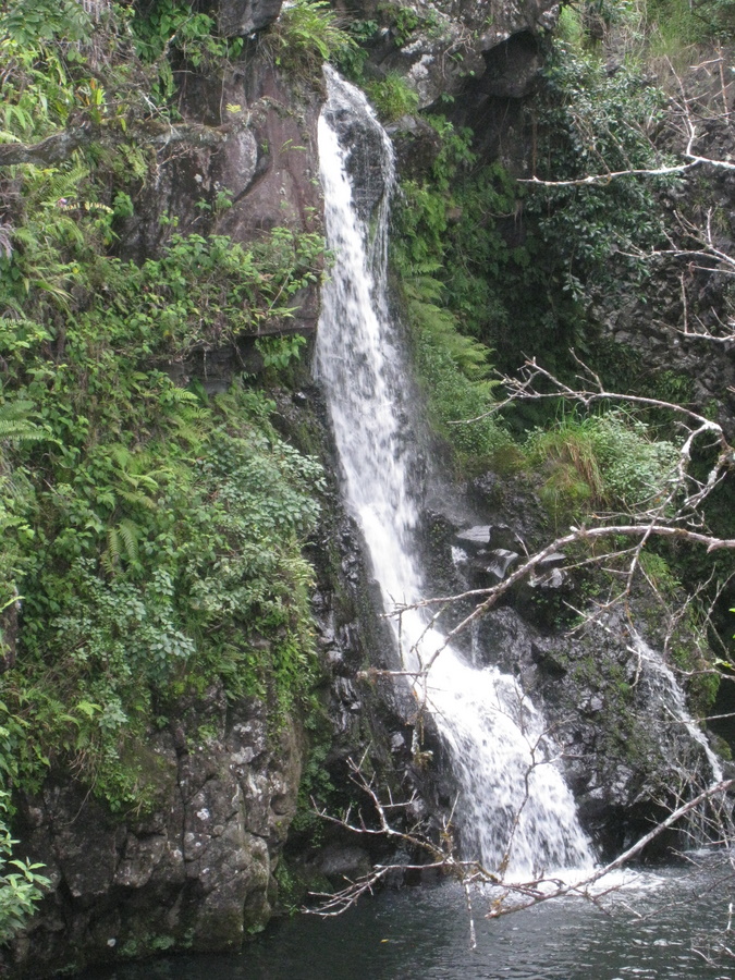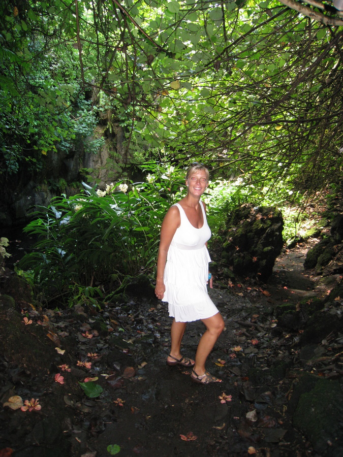 Fredag morgen chekkede vi ud fra vores skønne hotel og kørte sydpå. Vi havde besluttet os at køre til Hana. Det er ikke selve Hana by der er attraktionen, men vejen der til. Det er meget små og meget snoede veje over utallige små broer. Turen er på ca 110 km, så det tager det meste af dagen. ”Road to Hana” er et meget populært turistmål, og vi havde et kort og en CD i bilen, der fortalte om hvad vi så, og om hvornår vi skulle gøre stop. Det var rigtig fint med en ”guide”. Vi er der langs en af de mest regnfulde kyststrækninger i verden, så der var rigtig meget flot natur. Dog var der på denne årstid ikke så meget vand i vandfaldene.