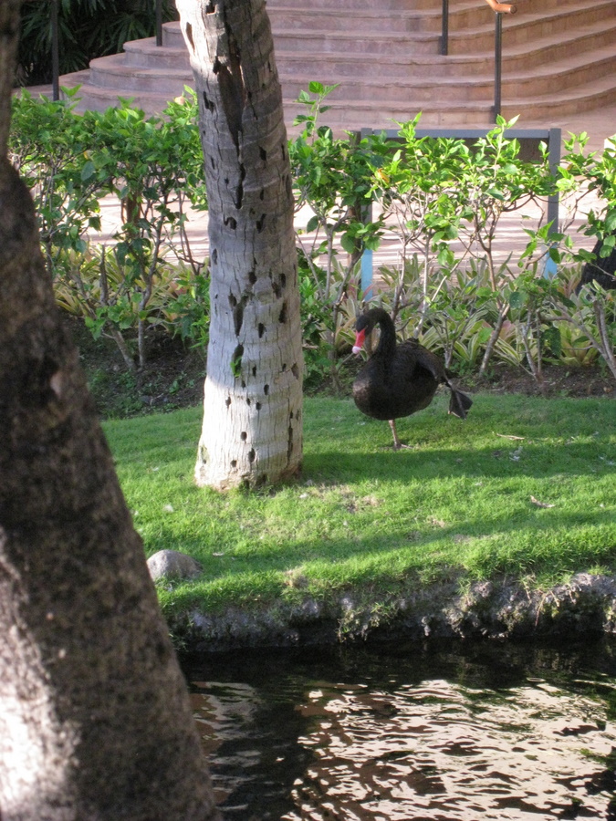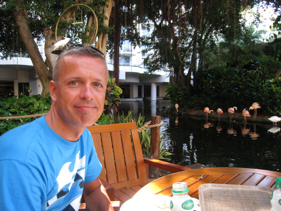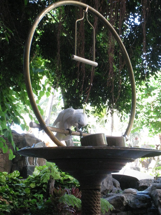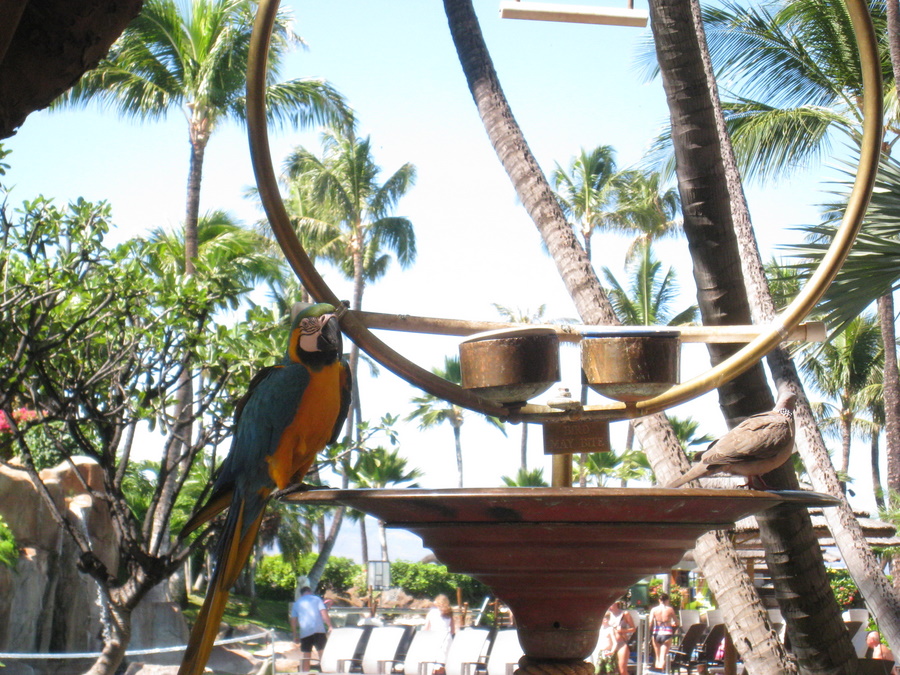 Faktisk viste det sig at vi blev glade for at vi havde prioriteret 4 nætter i Napili og kun 2 nætter på Kanapali Beach. På Kanapali beach er der noget mere gang i den, og på hotellet var der underholdning mv om aftenen. Imellem hotelbygninger er der et haveanlæg og en sø med flamingoer, papegøjer der sad og kiggede på os mens vi spiste (en meget dyr) morgenmad og flere store pools!