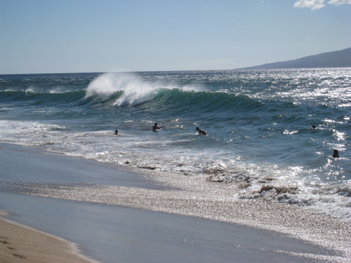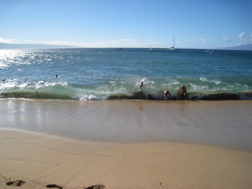 Lørdag brugte vi på stranden, og vi havde glædet os til at skulle snorkle med havskildpadder ved Black Rock, som ligger 500 m længere oppe på stranden. Desværre var der rigtig meget vind den dag, så der var store bølger og vandet var meget uklart. Vi fik da set havskildpadder og Hans kom næsten til at svømme ind i dem flere gange pga den dårlige sigtbarhed. Desværre fik vi kun set meget få fisk. At komme op fra vandet igen var en udfordring pga de store bølger. Hans nød dog at body-surfe i bølgerne resten af dagen.