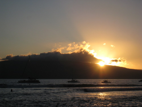 Om aftenen kørte vi igen ind til Lahaina by, hvor vi så solnedgang og spiste pizza tæt ved vandet. Vi fik gjort de sidste indkøb og nåede da også lige forbi endnu en Billabong butik!