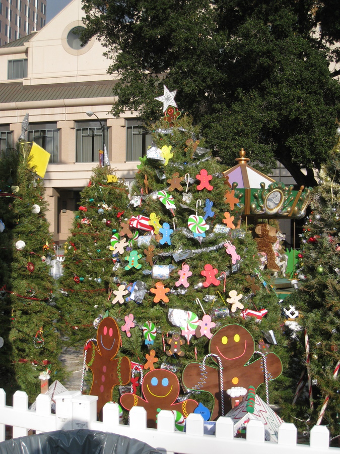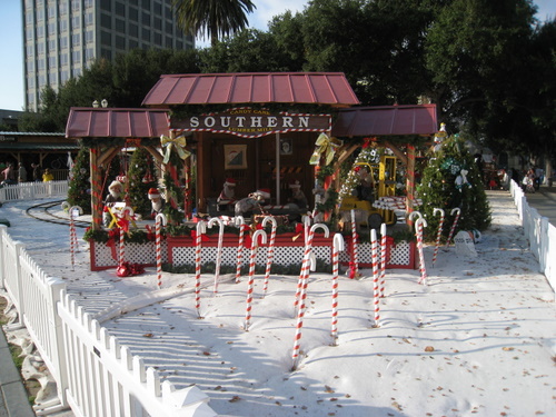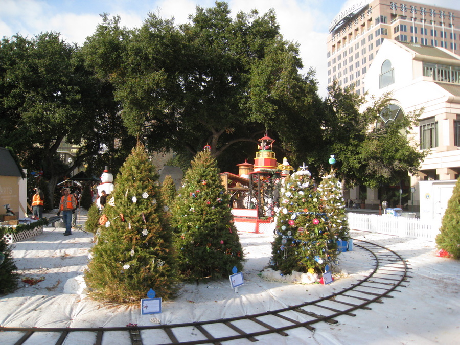 Lørdag d 5. dec tog vi en tur ind til downtown San Jose og så julebyen de havde lavet i parken. Hvert firma havde pyntet deres eget juletræ, så der var rigtig mange. Desuden mange små udstillinger.