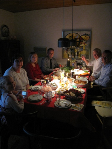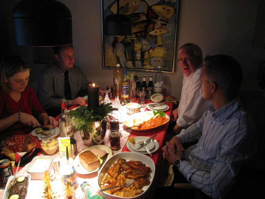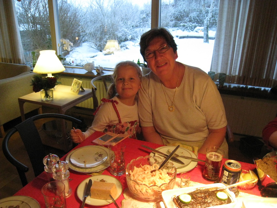 D. 25. dec kørte vi igen til Aalborg. Denne gang i meget grimt vintervejr, så julefrokosten måtte udsættes et par timer ...