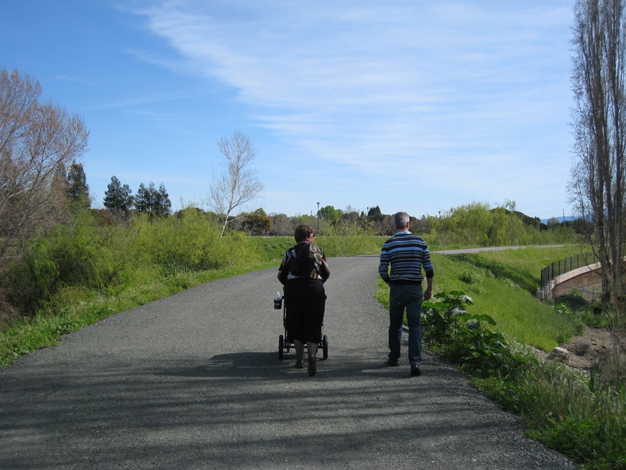 Søndagen var vi på en længere gå-tur i det skønne forårsvejr. Vi gik langs Guadalupe river til Rivermark, hvor vi nød en milkshake i solen.