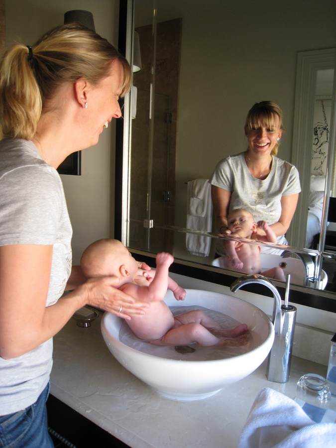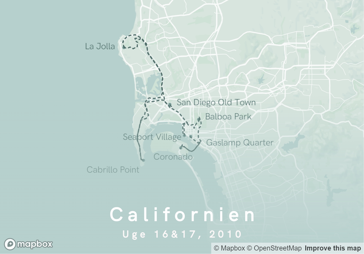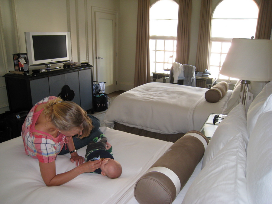 Under hele vores ferie oplevede vi at det var meget let at rejse med Mads, overalt var der plads til barnevognen, og han var velkommen overalt. Det var ikke svært at finde muligheder for bleskift, feks. var der både i Balboa park og ved Cabrillo point et specielt diaper-changing room, med bord og håndvask – så det var fint. Ellers blev vi gode til at skifte ble siddende med ham på skødet på bagsædet i bilen, ligesom amningen foregik her de fleste gange.