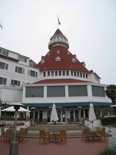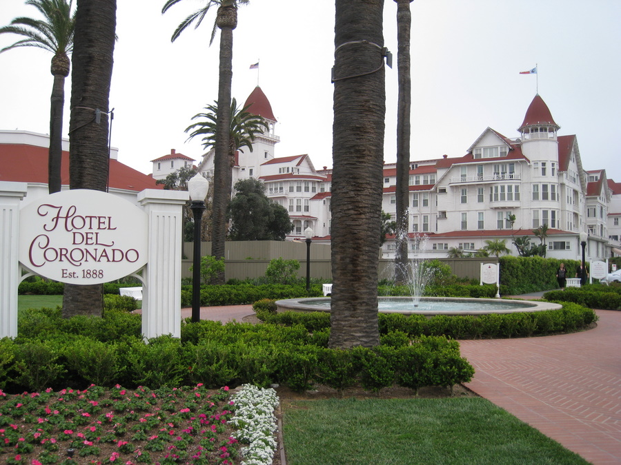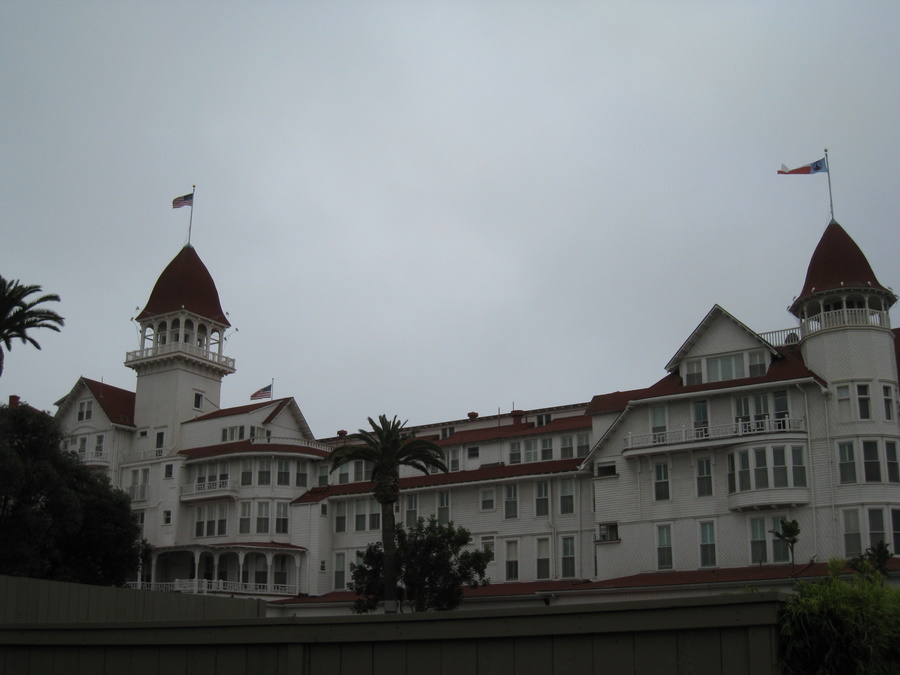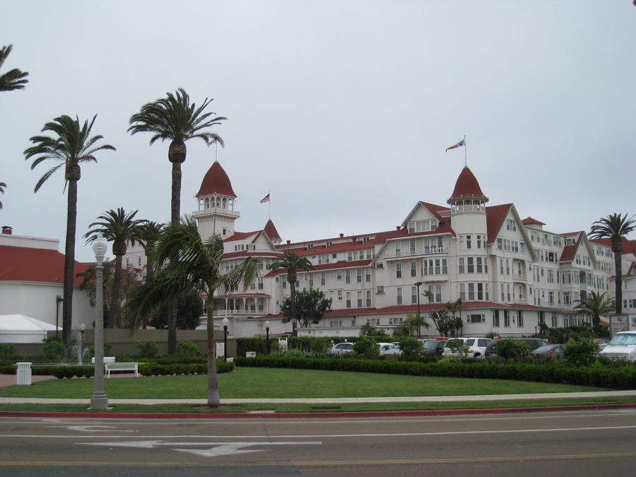 Denne mandag formiddag havde vi valgt at køre over til Coronado øen, desværre var vejret ikke særlig godt. Vi så dog det berømte hotel Del Coronado (bygget i 1888), hvor Thomas Edison personligt har installeret det elektriske lys. Der er masser af historier at fortælle om dette sted, bl.a Englands Edward d 8 mødte sin kone her, filmoptagelse med Marilyn Monroe mm.
