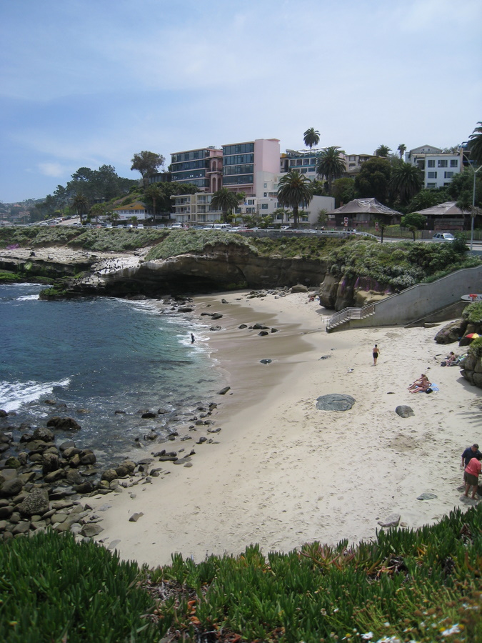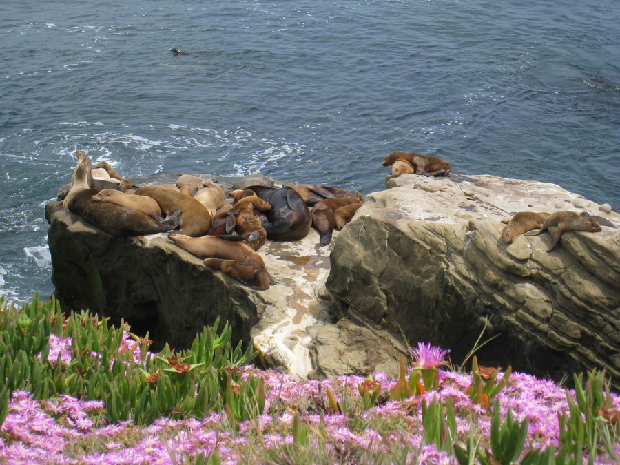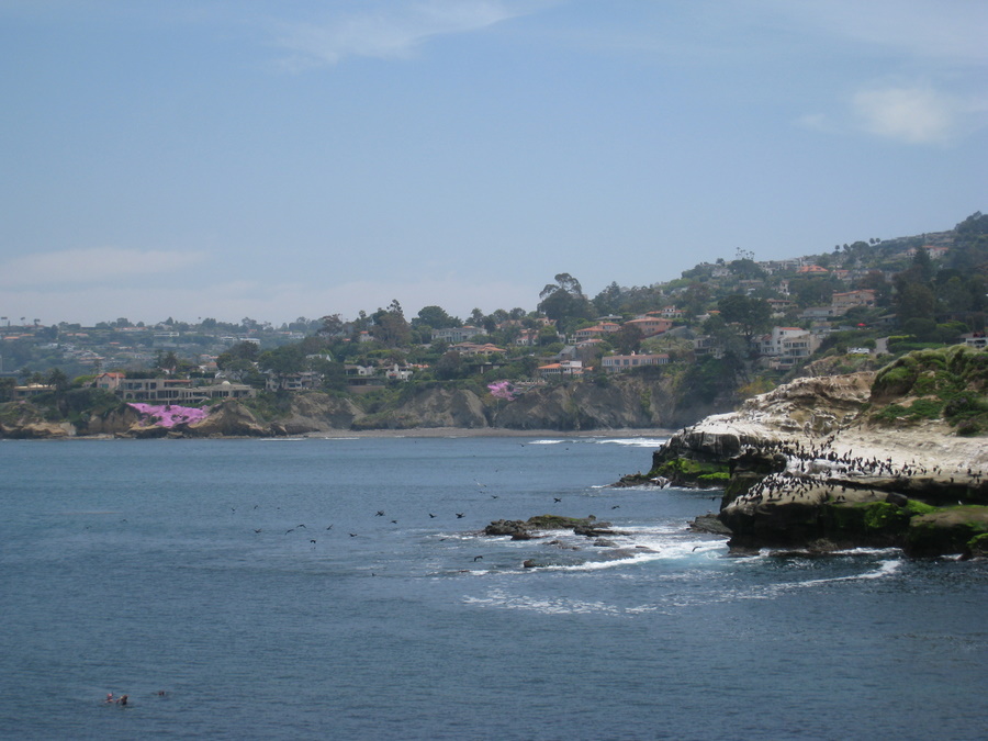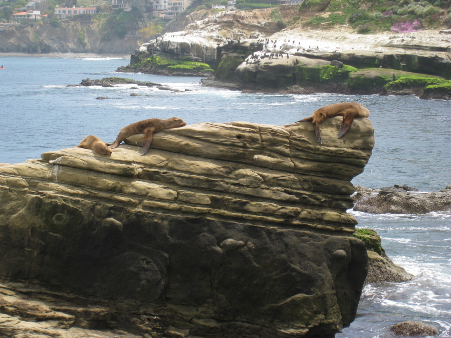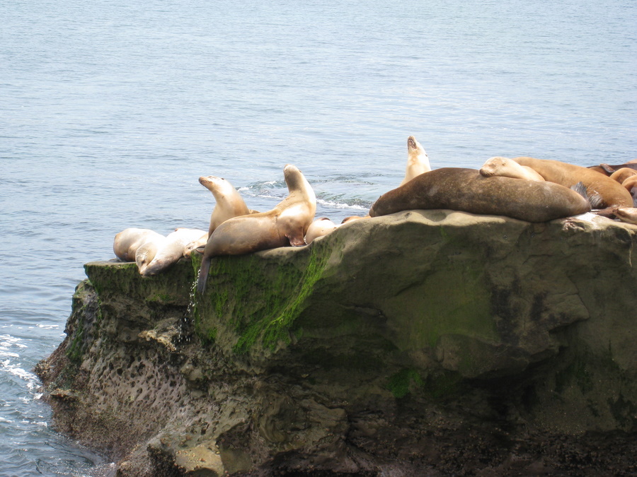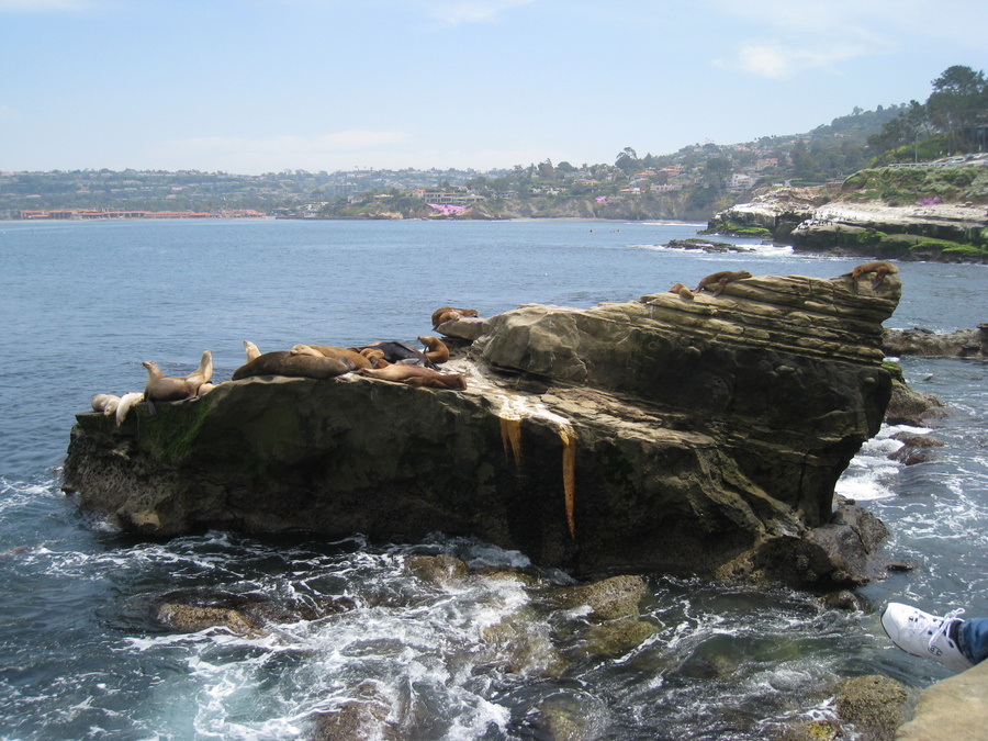 Tirsdag var det lidt bedre vejr, så vi kørte til La Jolla, der ligger ud mod vandet og er kendt som San Diegos Beverly Hills. Mads var lidt ked af det, så den sene morgenmad var lidt stressende trods den meget flotte udsigt (og på trods af en stor havmåge spiste halvdelen af Hans’ mad). Vi gik en lille tur i byen og langs vandet. På en af klipperne lå sælerne og solede sig.