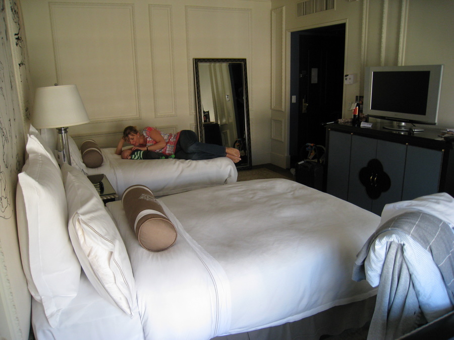 Hver aften var der ”Turn down service”, mellem kl 18-21 kom de på værelset, og gjorde vores senge klar til natten, lagde et lille tæppe på gulvet ved sengen som man kunne ”tørre” fødder i inden man svang sig op i seng, rullede gardinerne ned, satte en flaske vand på natborden, chokolade på hovedpuden, tændte lyset på badeværelset, fyldte is i isspanden og tændte radioen med stille musik. Ja, vi var helt overvældet da vi kom tilbage på hotellet efter en gåtur og aftensmad i Gaslamp Quarter (Gaslamp Quarter var tidligere et betændt og forfaldent kvarter men er nu trygt område med restaureret victorianske huse med restauranter og barer). Og for resten, hver morgen fik vi leveret avisen, det eneste der manglede på dette hotel var morgenmad – som vi måtte finde ude i byen (mod at spise på den meget dyre restaurant på hotellet).