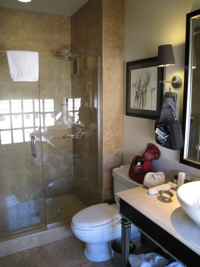 Da vi ankom aflevere vi bilen i Valet parking, og de parkere bilen for os, dernæst var der én der fulgte os ind til check-in med alt vores baggage og bagefter en anden person der leverede vores kufferter op på værelset. Mads havde et lille ”uheld” og måtte i bad i håndvasken kort tid efter vi var ankommet!!