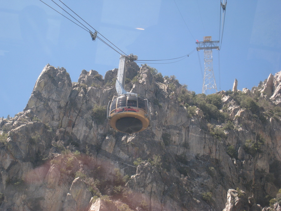 Fredag startede vi med en tur op i skyerne inden vi kørte tilbage mod Los Angeles. I udkanten af Palm Springs ligger Palm Springs Aerial Tramway – en svævebane som tog os på en 4 km lang opstining til Mountain Station i 2599 meters højde, hvor vi tydelig kunne se toppen af San Jacinto bjerget på 3299 meter. Svævebanen drejede rundt under op-og nedstigningen så vi fik 360 gr udsigt.