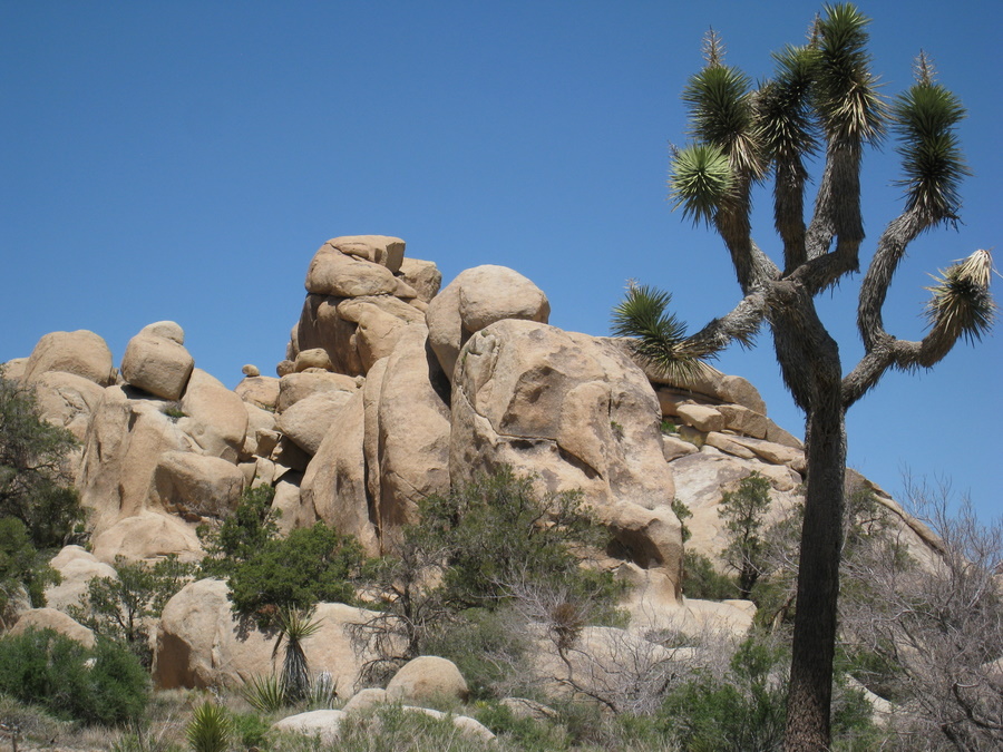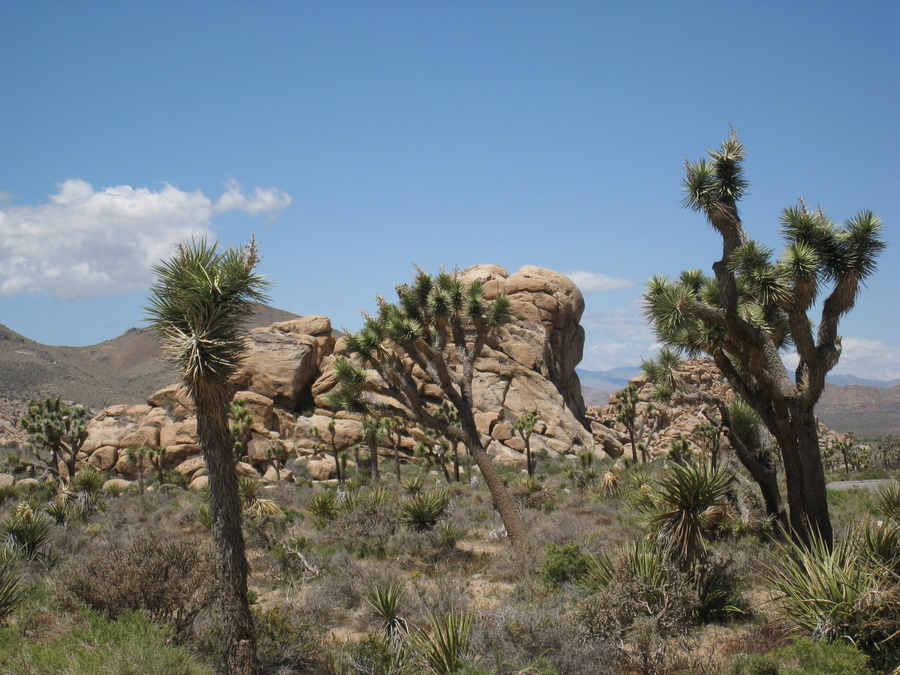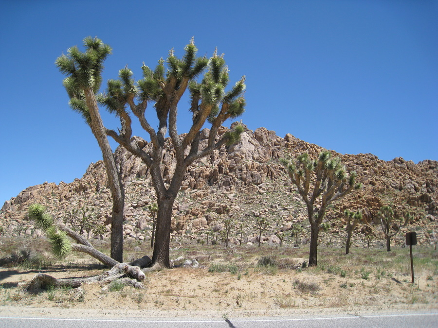 Torsdag kørte vi gennem Joshua Tree National Park. National parken er kaldt op efter Joshua træet som kan blive op til 15 meter og har fået navnet af mormonerne. Træet har en særlig evne til at overleve ved at have et tæt net af rødder så det opsamler så meget som muligt af den meget sparsomme nedbør.