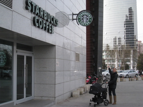 Resten af torsdagen gik vi en tur i området ved hotellet. Og noget at det første vi så var en Starbucks! Det skulle fejres med en latte – men, men det kunne de ikke lave her i Beijing, i hvert fald ikke på denne Starbucks.