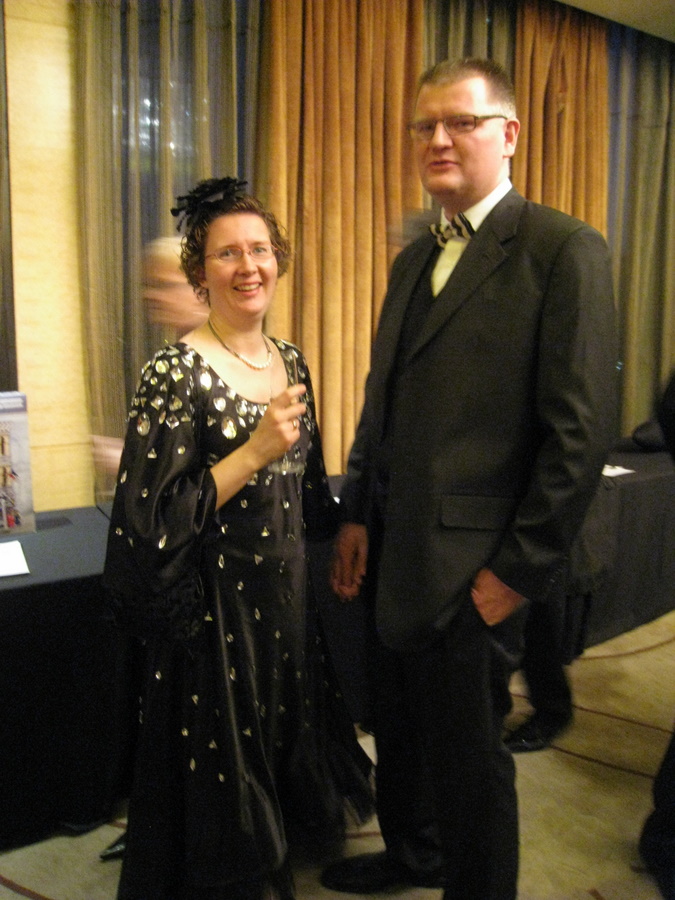 Vores Ayi var gået en tur med Mads, hvilket var helt fint sådan, da vi løb rundt de sidste 5 min. inden vi skulle af sted. Kjolen bar præg af, at den var lavet lidt hurtig og hele aftenen havde Lisa nogle meget skarpe stivere som skar ind i brystet! Det er imidlertid senere rettet, og nu er kjolen som den burde have været i første omgang. Det varede et par dage inden Lisa kunne snakke med skrædderen igen, men de har fået talt ud om det, og hun stoler på at han kan lave noget andet en anden gang. Det skal bare ikke være så kompliceret at han skal have hjælp af andre!
