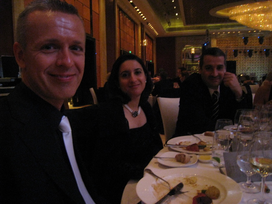 Temaet for aftenen var sort/hvid galla. Da vi jo ikke havde noget af den stil med i kufferterne fra Danmark, måtte vi ud at købe. Hans fik købt jakke, skjorte og slips. Lisa fik bestilt en kjole hos skrædderen godt 10 dage inden festen. Skrædderen havde foreslået at hun skulle kigge på nettet og lade sig inspirere, så i gang med at kigge på Oscar kjoler – og valget faldt på Demi Moores kjole fra 2010 der er designet af Versace – ja, intet mindre kunne gøre det. Skrædderen kløede sig da også lidt på hagen, da han så billedet! Men han var sikker på, at han kunne få den lavet ved hjælp af en meget dygtig skrædder der kun syr for de store modehuse inde i byen – så vi stolede på ham.