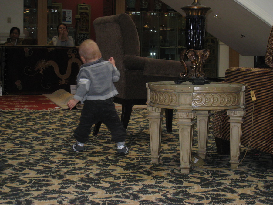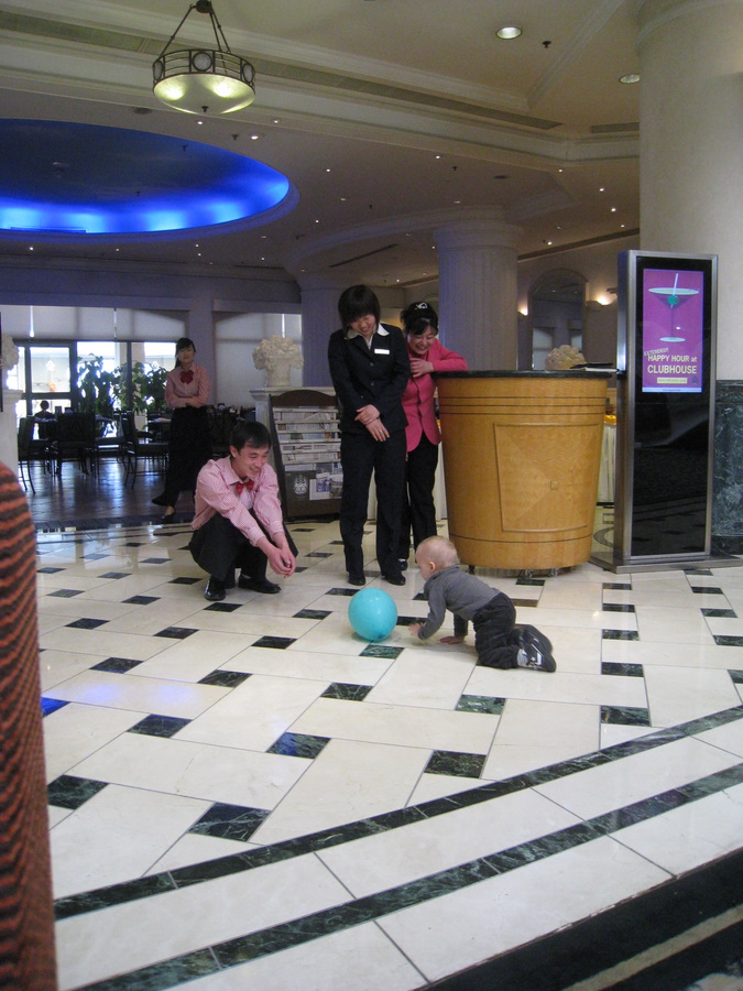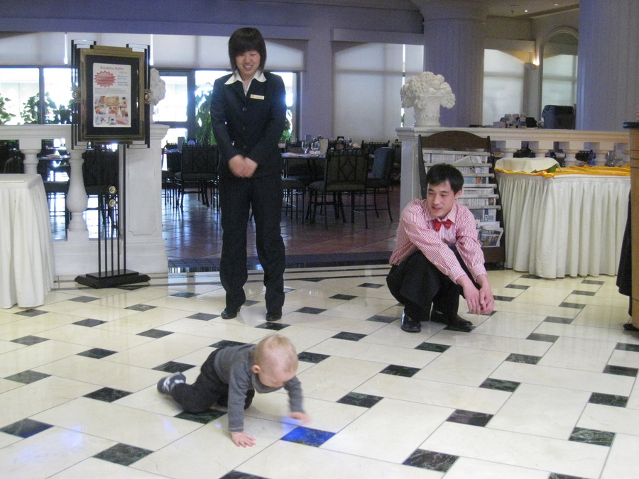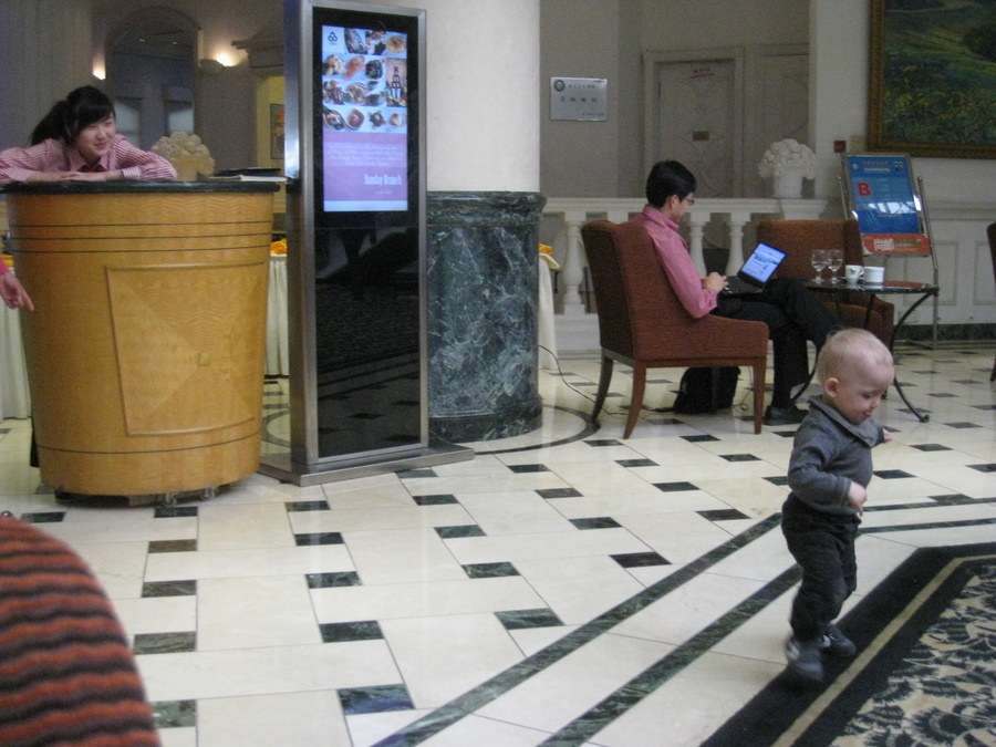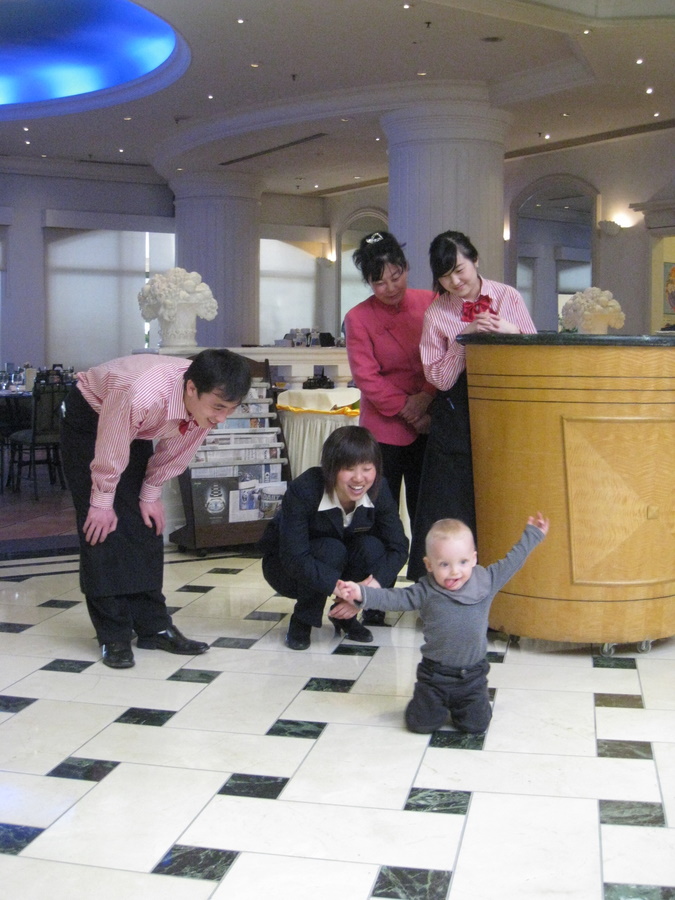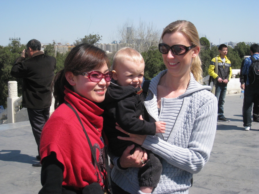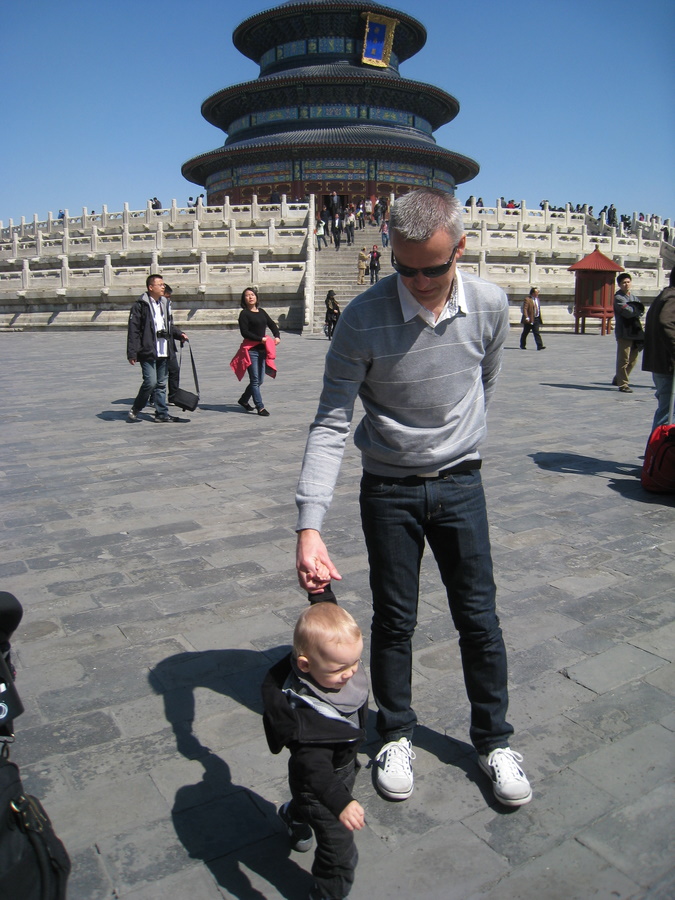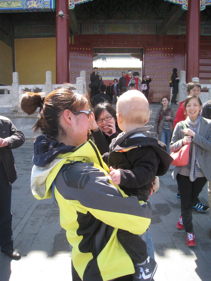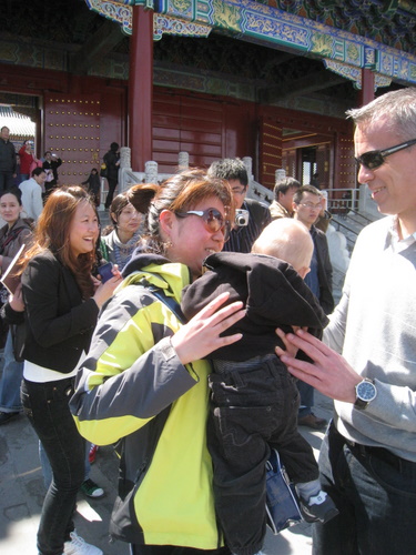 Mads var igen denne dag et yndet foto objekt (både med sin far og mor). Vi oplevede flere gange at folk ville løfte ham op og vi nåede da at stoppe det de fleste gange. Efter at Mads har taget sine første skridt gider han ikke rigtig sidde i klapvognen så lang tid af gangen mere. Han vil op og gå rundt – til stor morskab for alle kineserne, der alle kigger beundrende på ham.