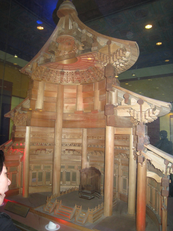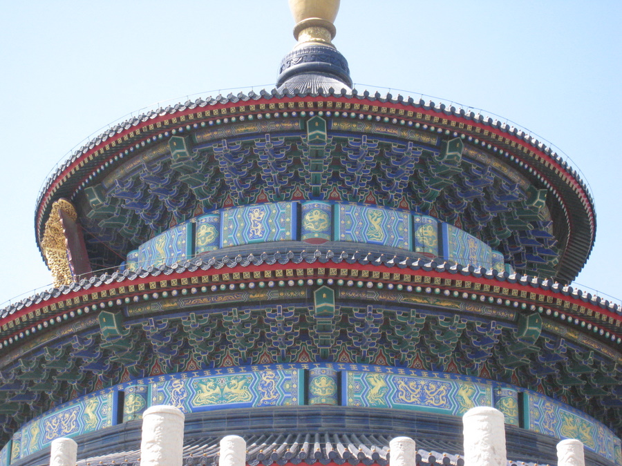 Templets tredelte tag repræsenterer de traditionelle kinesiske tids inddelinger. De to nederste tage holdes oppe af hver 12 træsøjler. De nederste symboliserer de tolv tidsenheder, man oprindeligt inddelte døgnet i. De mellemste gør det ud for månederne i månekalenderen, mens det øverste tags fire stolper fordeler sig på årstiderne.