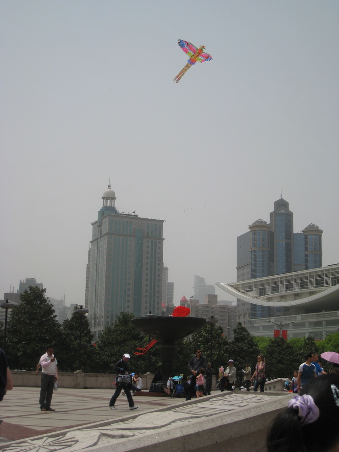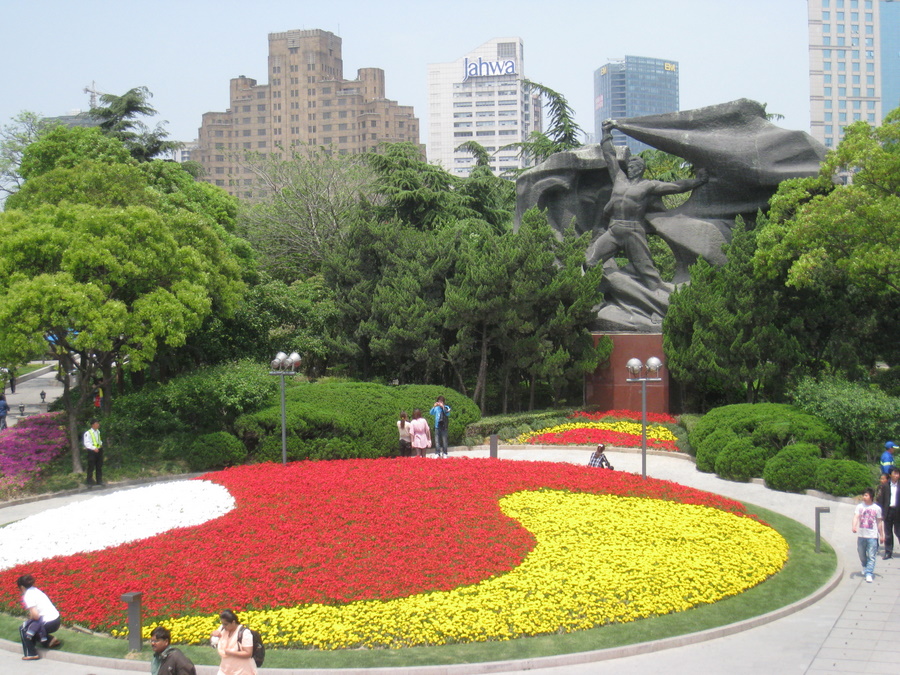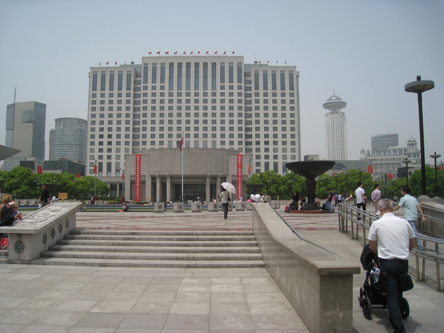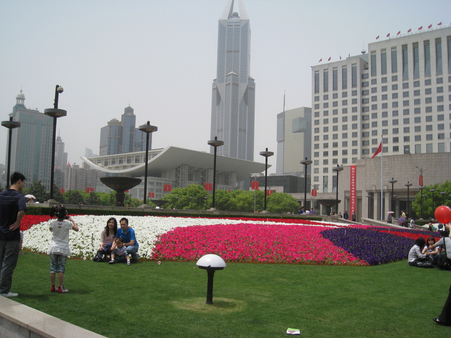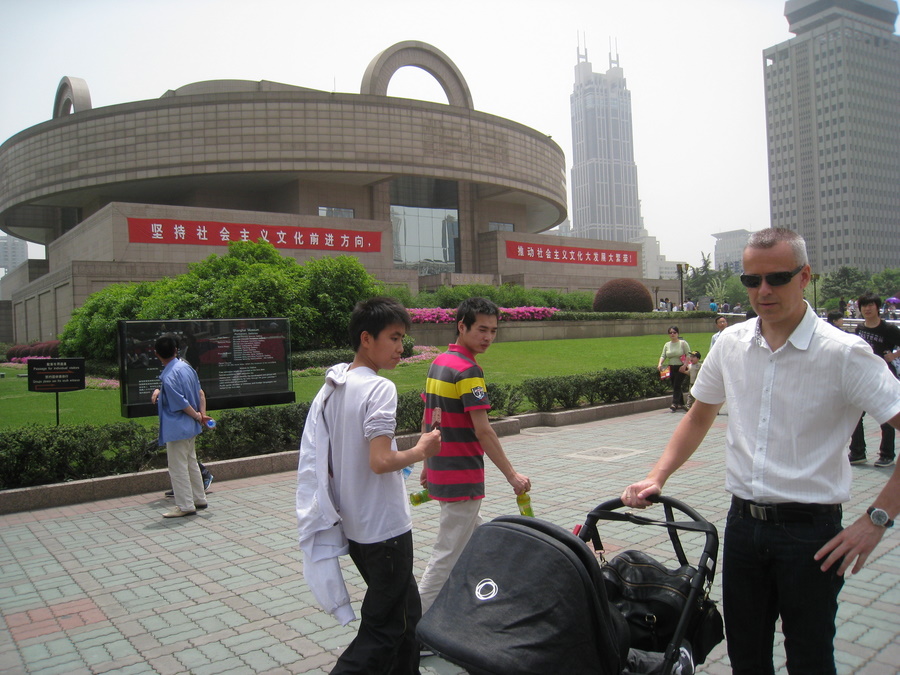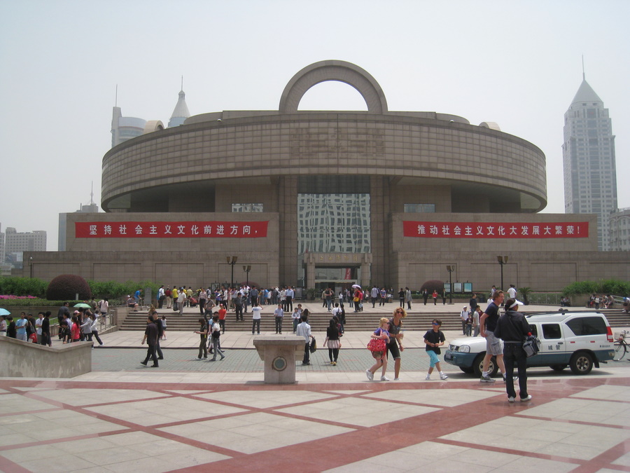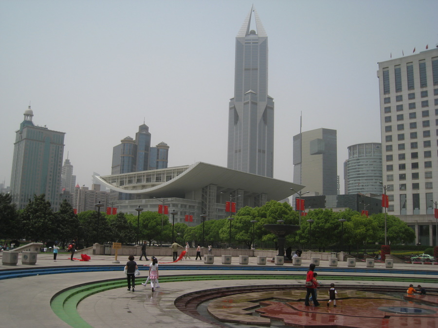 Søndagen startede vi med at gå mod Folkets Plads (Renmin Square), som er blevet Shanghais nye kulturelle centrum med museer, teatre, koncertsale, parker og store hoteller. Hvis man ser området fra oven ligner det formen på en væddeløbs bane – og det er ikke så mærkelig endda, da Briterne i 1862 netop byggede en hestevæddeløbsbane der. Men i 1990 er den blevet jævnet med jorden og erstattet af bygninger og parker.