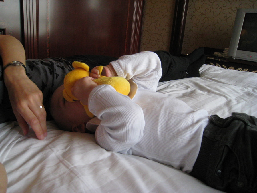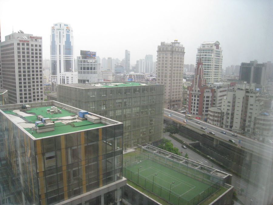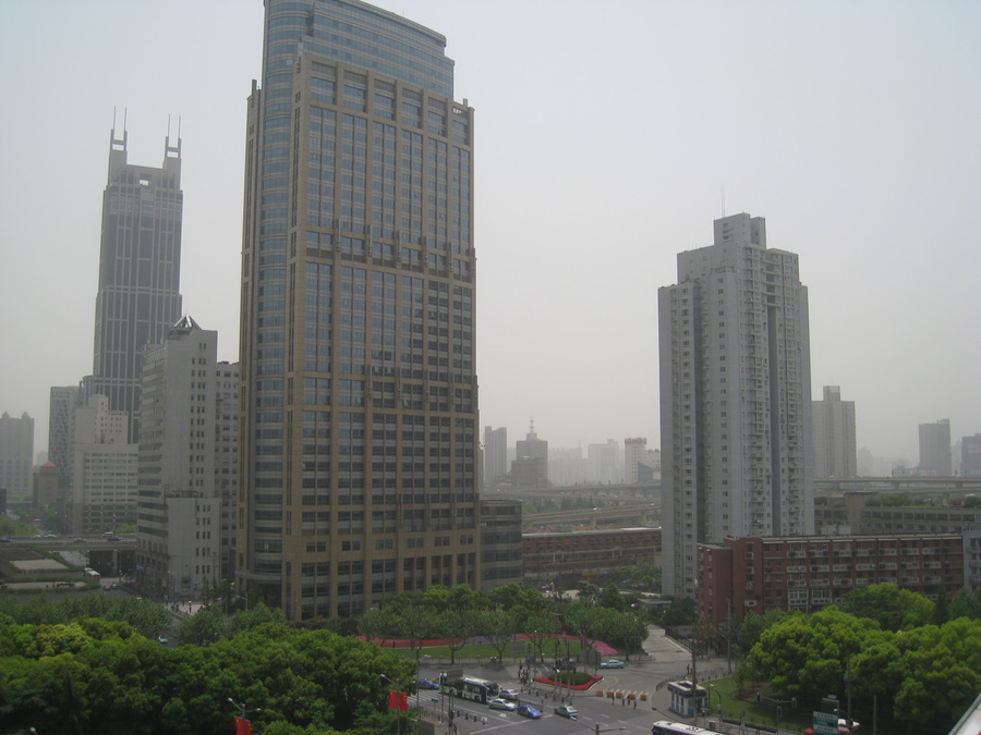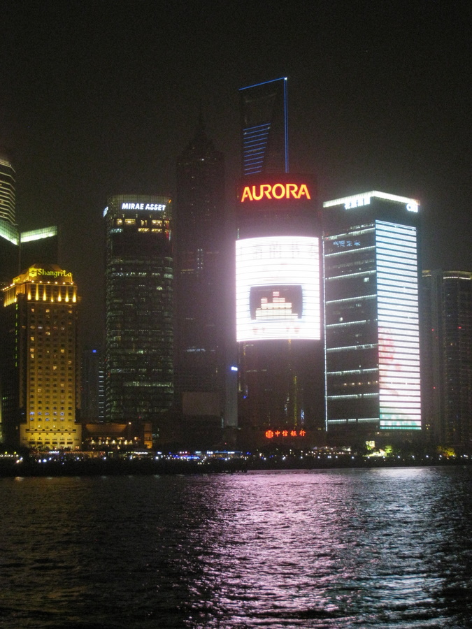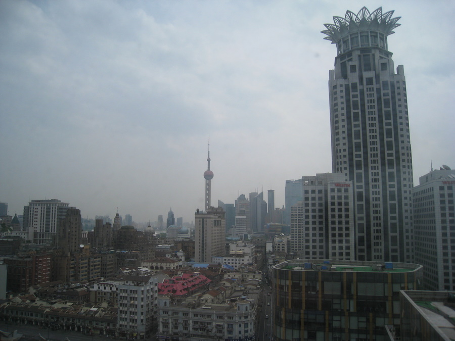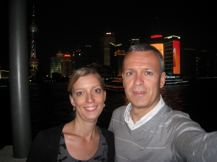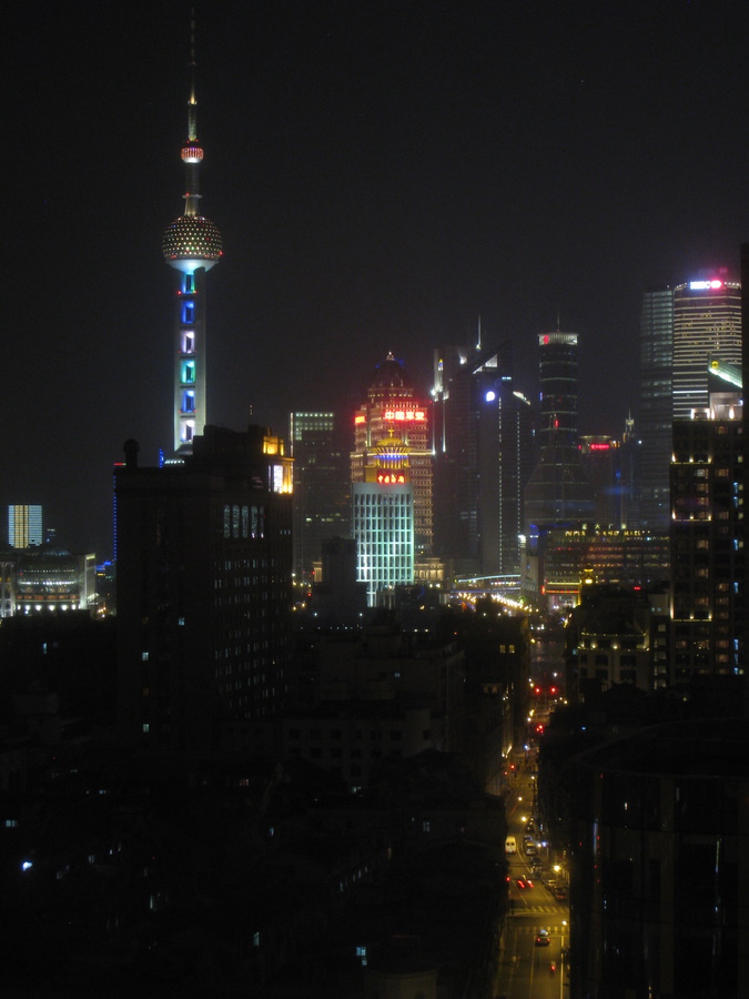 Hotellet som vi havde booket lå i gå afstand til den central del af Shanghai. Selvom det var mørkt da taxien kørte os mod hotellet, kunne vi godt fornemme på alle højhusene med lys i alle farver at det var en moderne storby vi var kommet til. Vores værelse lå højt oppe med en udsigt til floden Huangpu over mod Pudong.