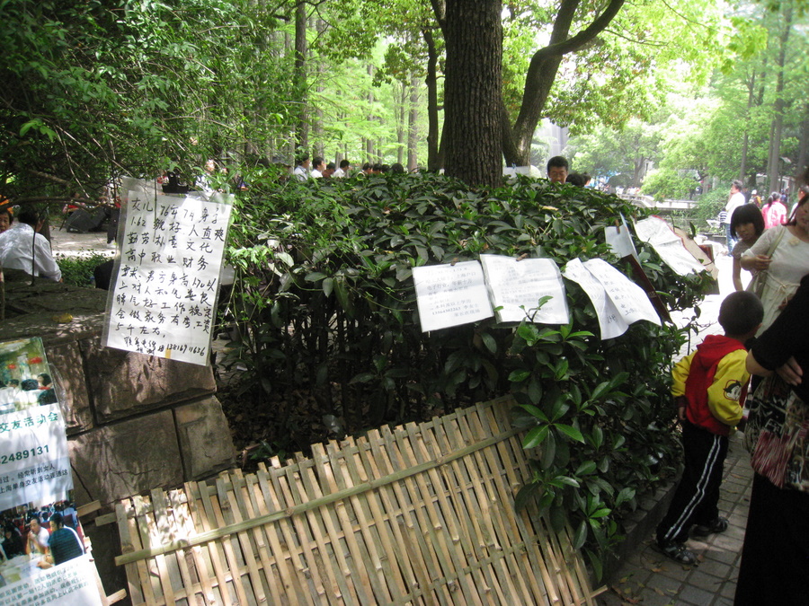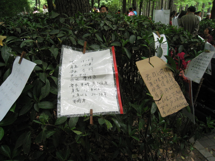 Et sted i parken var der samlet rigtig mange folk, der sad med sedler og der hang lige så mange i buskene. Vi undrede os over hvad dette mon betød. Har senere fået oversat sedlerne (v.h.a.fotos) og det viste sig at det var forældre der ledte efter kærester/ægtefæller til deres børn. På sedlerne stod der personlige oplysninger, og så var det bare at vælge. Det var en noget mindre moderne udgave af internetdating!!