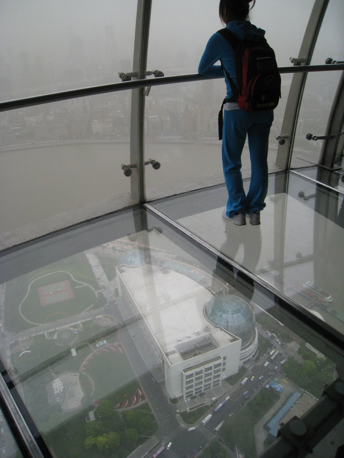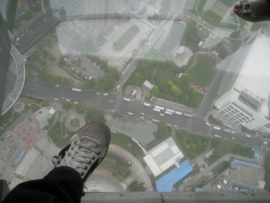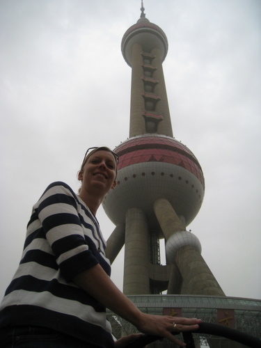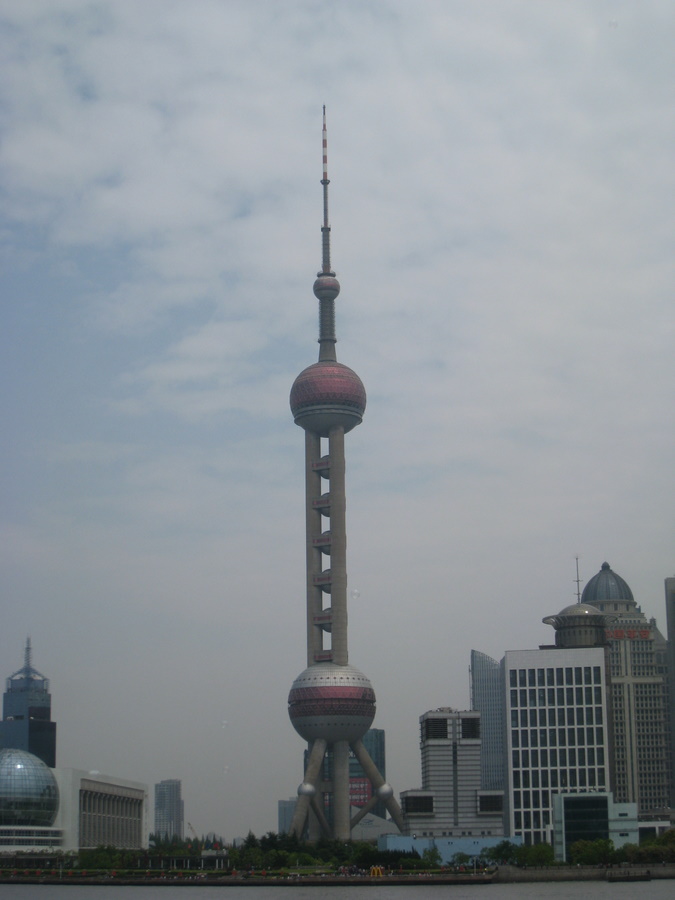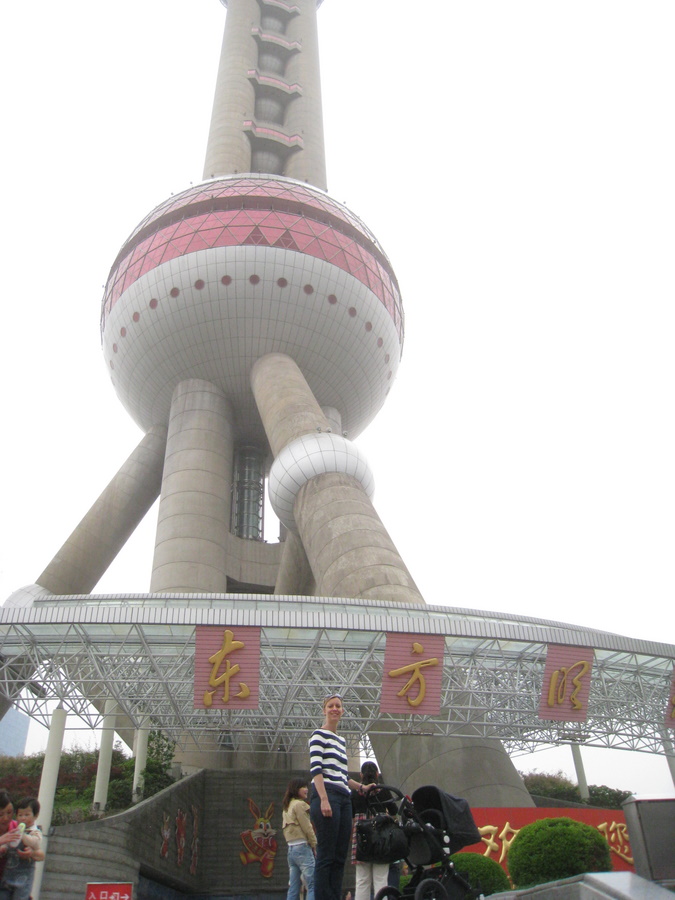 TV tårnet er 468 meter højt og er designet som ”store og små perler, der falder ned i en jadeskål”. Udsigtsplatformen ligger i 263 meters højde, hvorfra der er en storslået udsigt til de andre skyskraber på Pudong siden og The Bund på den anden side af floden. I den nederste del af udsigts platformen var gulvet af glas, så man kunne kigge direkte 263 meter ned – det kildede lidt i mave at gå der!